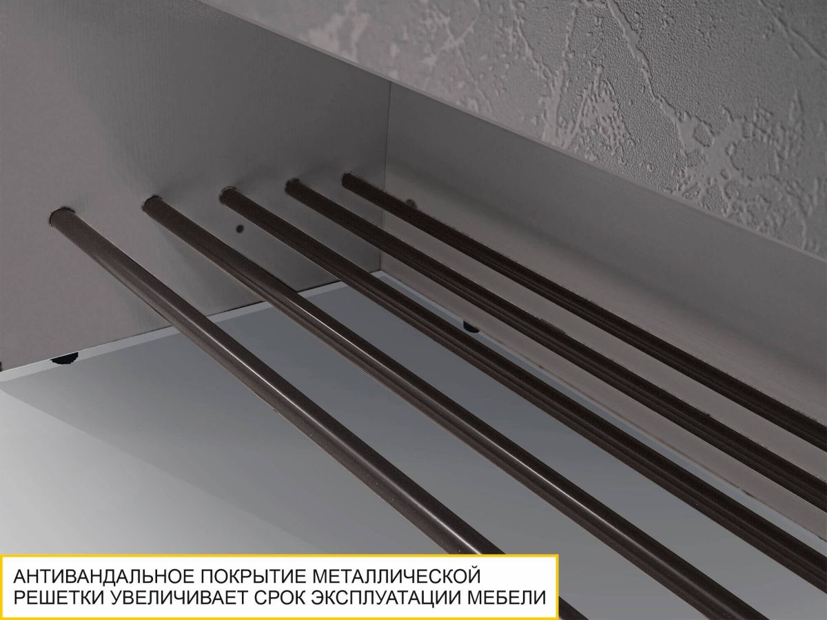- Покрытие на металлической решетке для обуви имеет антивандальные свойства для увеличения срока эксплуатации мебели.