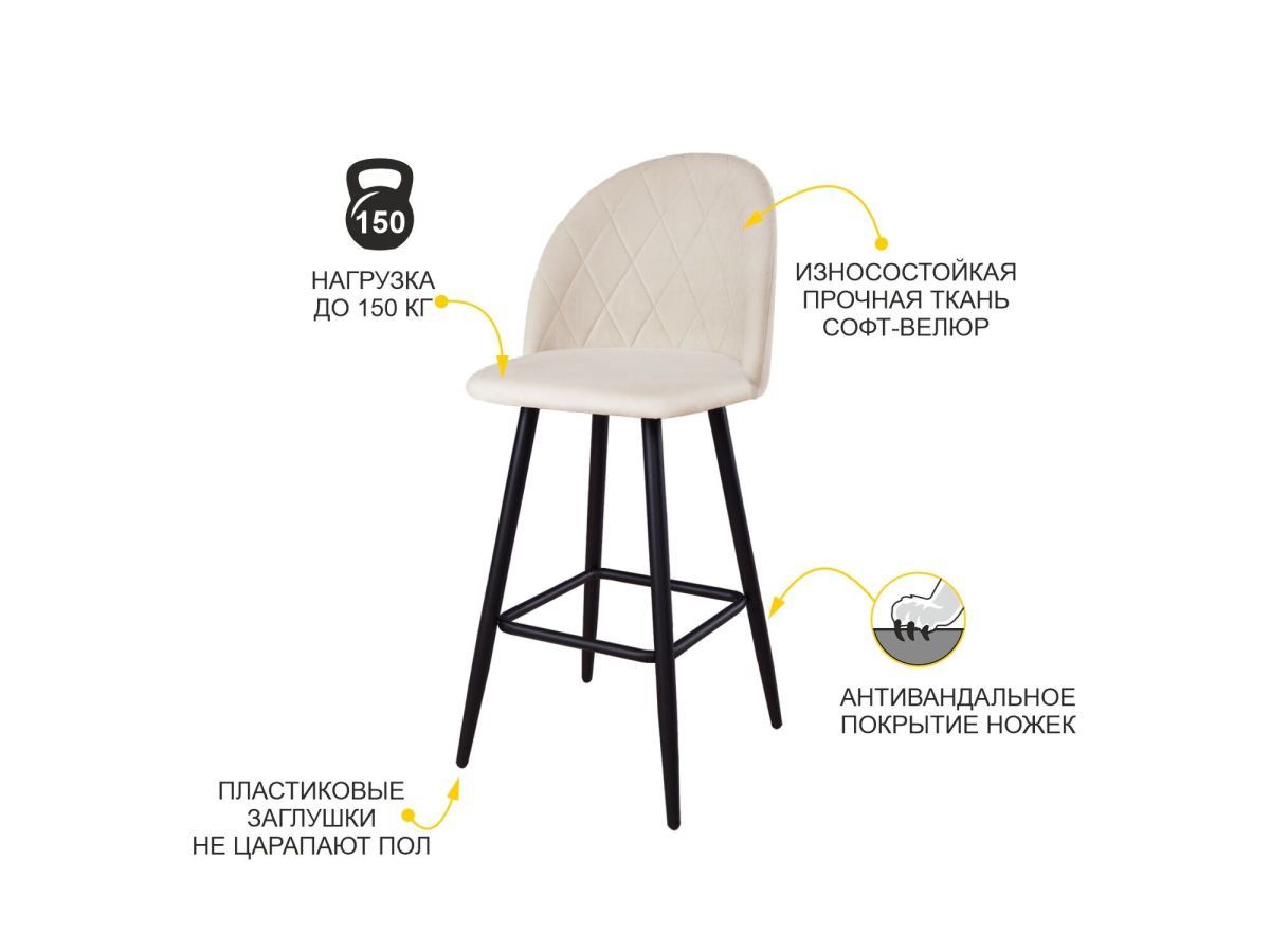 Барный стул Велюр Лира 13 (01) Бежевый-Черный