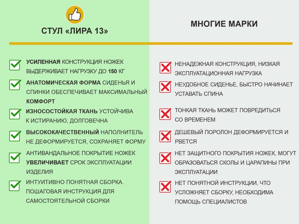 • Прочная конструкция ножек позволяет стулу выдерживать нагрузку до 150 кг. Это значительно больше, чем у многих производителей.