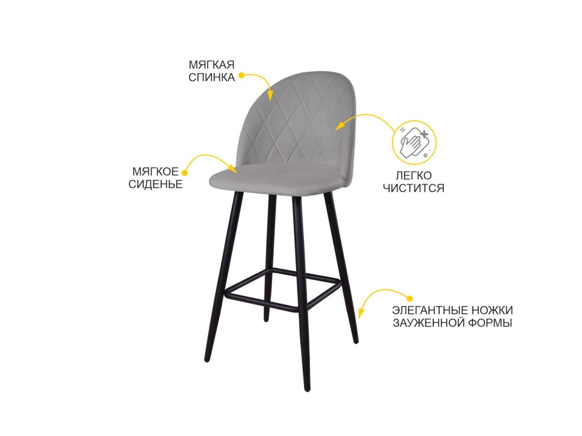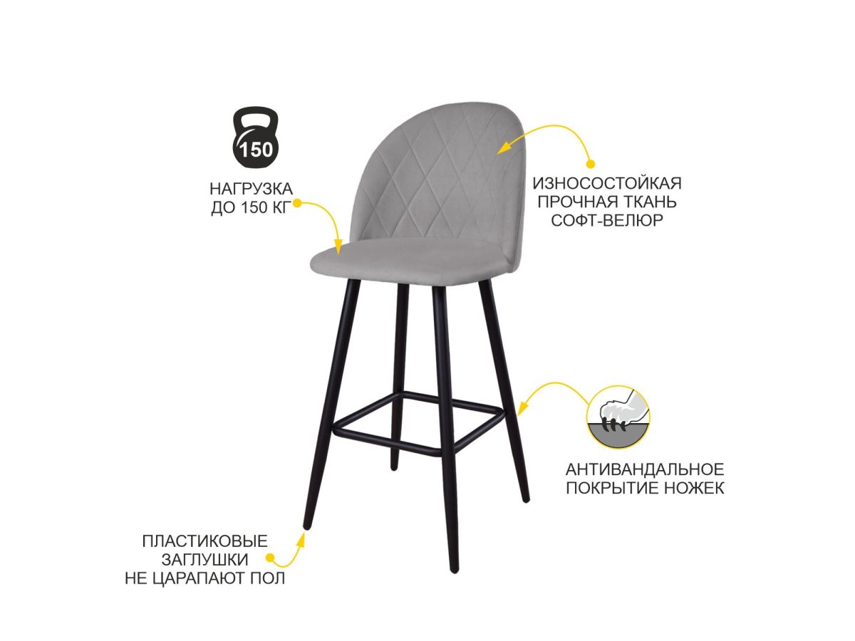 Барный стул Велюр Лира 13 (03) Серый-Черный