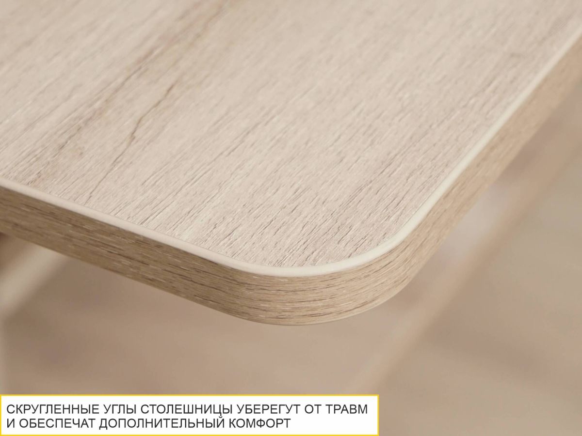 • Столешница выполнена из ЛДСП повышенной прочности толщиной 16 мм. Материал устойчив к механическому истиранию и термическому воздействию.