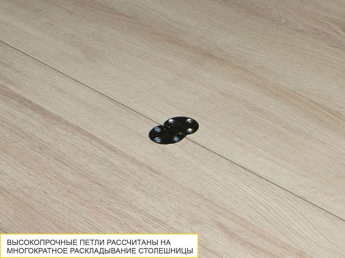 - Высокопрочные накладные петли надежно крепятся к столешнице и рассчитаны на многократное раскладывание стола.
