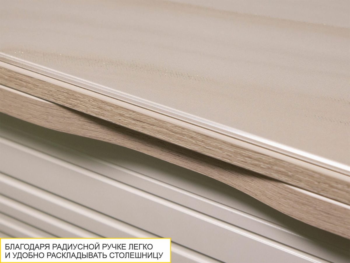 - Радиусная ручка на столешнице облегчает процесс раскладывания.