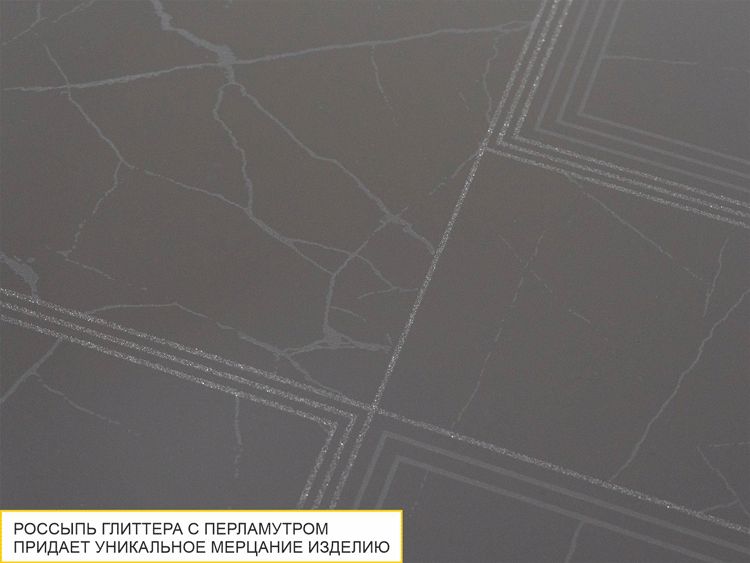 - Дизайнерский рисунок на столешнице нанесен методом шелкографии, благодаря которому он не стирается и не выцветает со временем. Высокая четкость контура изображения достигается за счет применения качественных материалов. Сверху рисунок покрыт россыпью глиттера, что придает ему утонченное мерцание и добавляет изделию оригинальности.