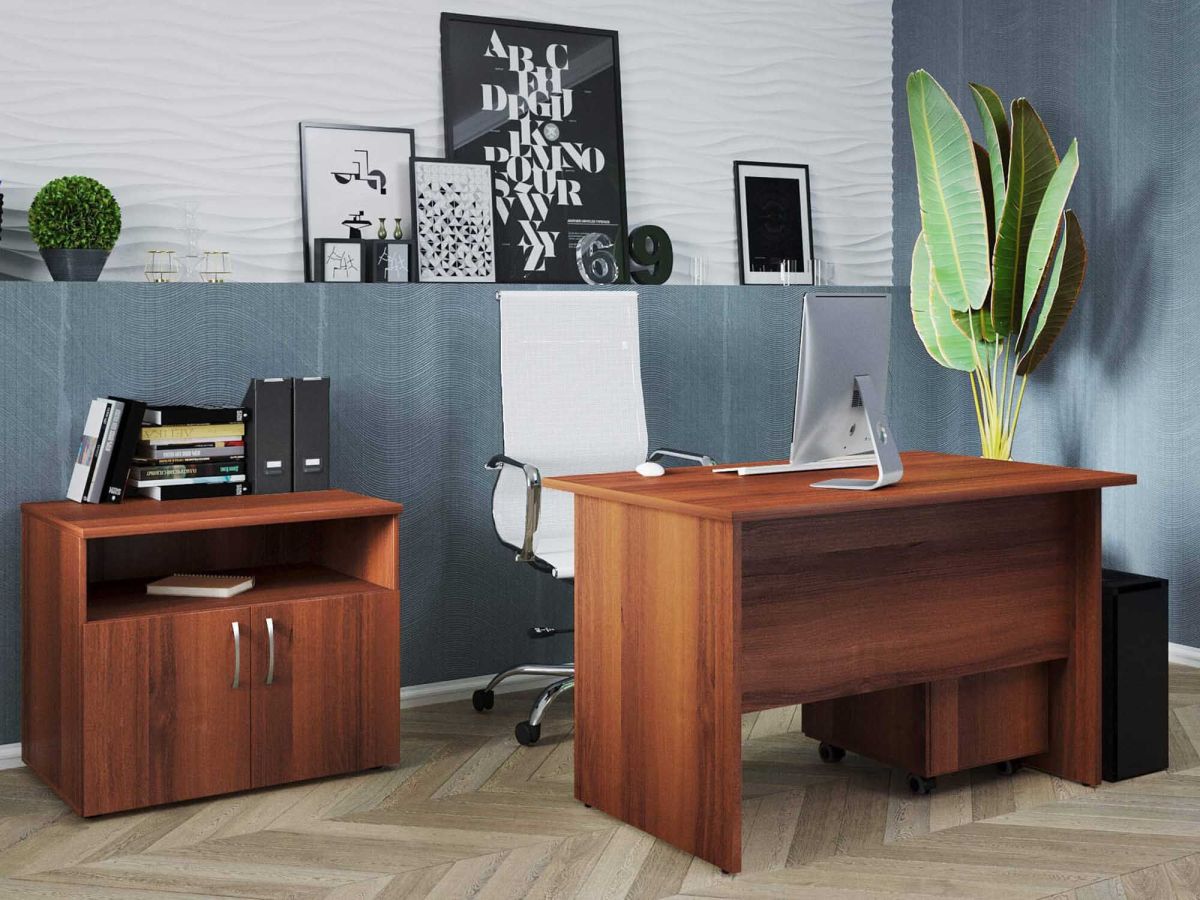 Набор мебели «Альфа 62 583» позволит организовать комфортное рабочее место. Набор мебели для офиса состоит из рабочего стола, выкатной тумбы с замком и тумбы под оргтехнику. «Альфа 62 583» является частью модульной коллекции «Альфа 62», а это значит, что Вы можете купить этот набор в представленном виде или дополнить состав набора с учетом своих пожеланий.