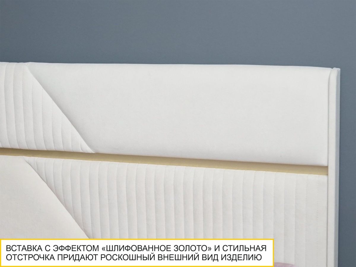 • Стильная отстрочка в сочетании с металлизированной декоративной вставкой с эффектом шлифованного золота придают кровати изысканный внешний вид.