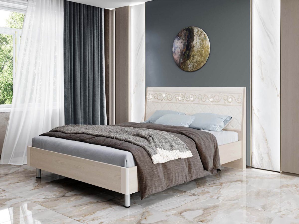 • Спинка кровати декорирована вставкой из экокожи и украшена оригинальной фрезеровкой, глиттерным рисунком и кристаллами премиум-класса.
