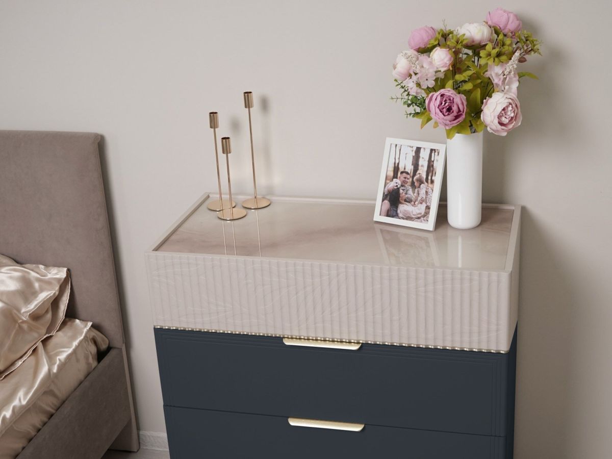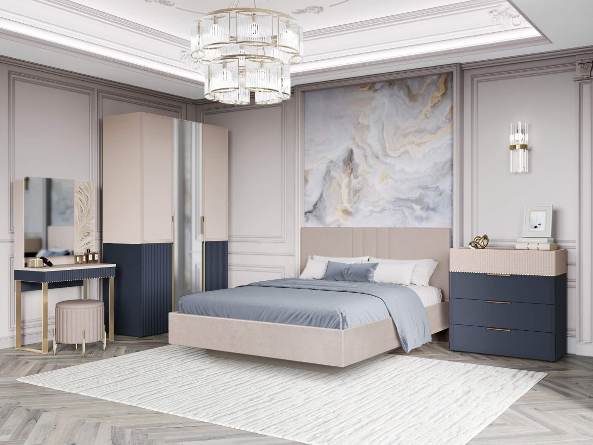 Комод «Флоренция 905.18» является частью модульной программы «Флоренция». Спальня «Флоренция» – это образец изящности и современной роскоши. Цвета «Кашемир» и «Индиго» образуют стильный и теплый дуэт: светлый тон наполняет пространство мягкостью, а насыщенный темно-синий придает интерьеру глубину и изысканность. Оригинальные элементы в цвете «сатиновое золото» и элегантная фрезеровка подчеркивают утонченный дизайн коллекции.
