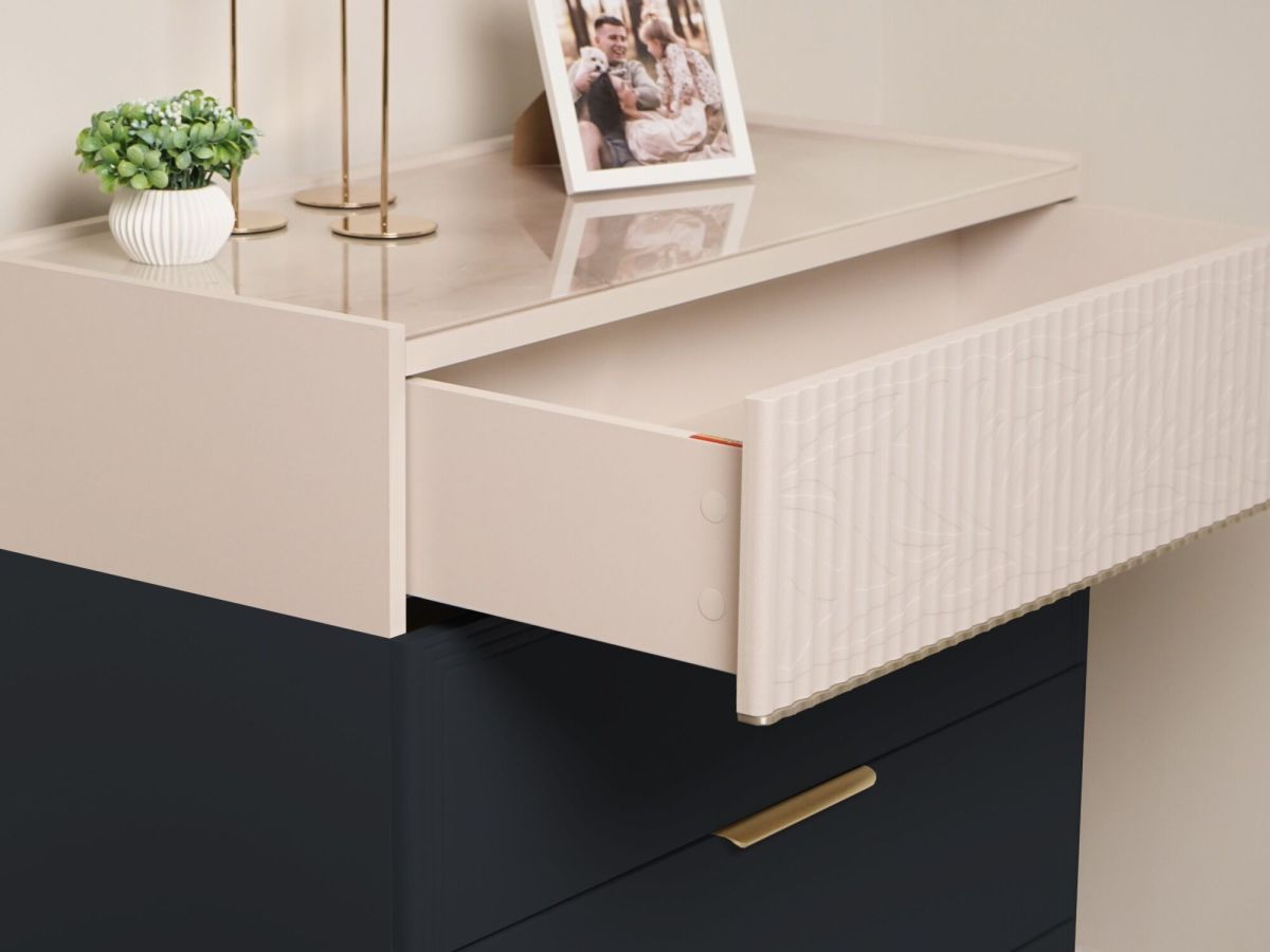 - Верхний ящик комода легко открывается за счет выступа фасада.