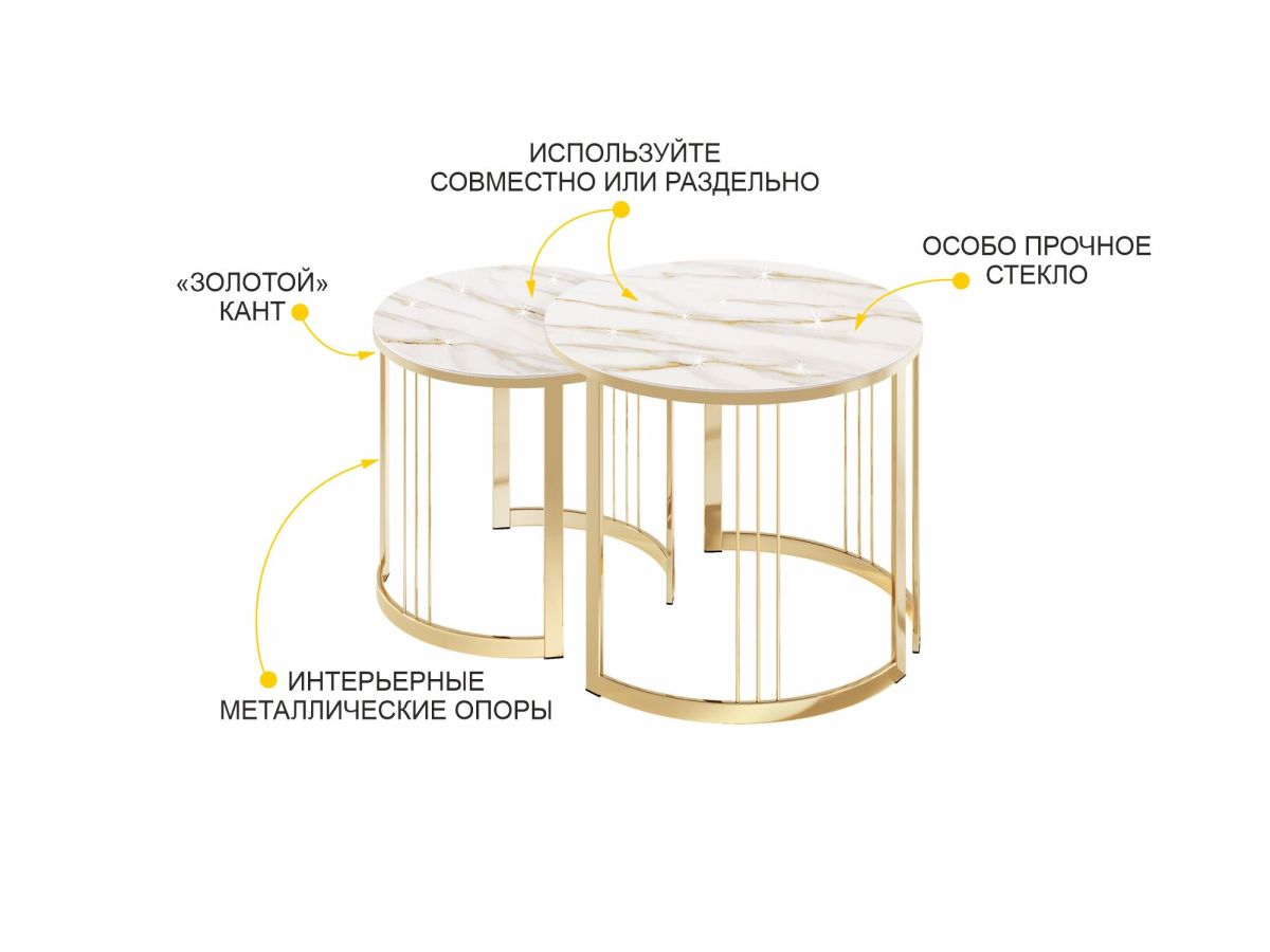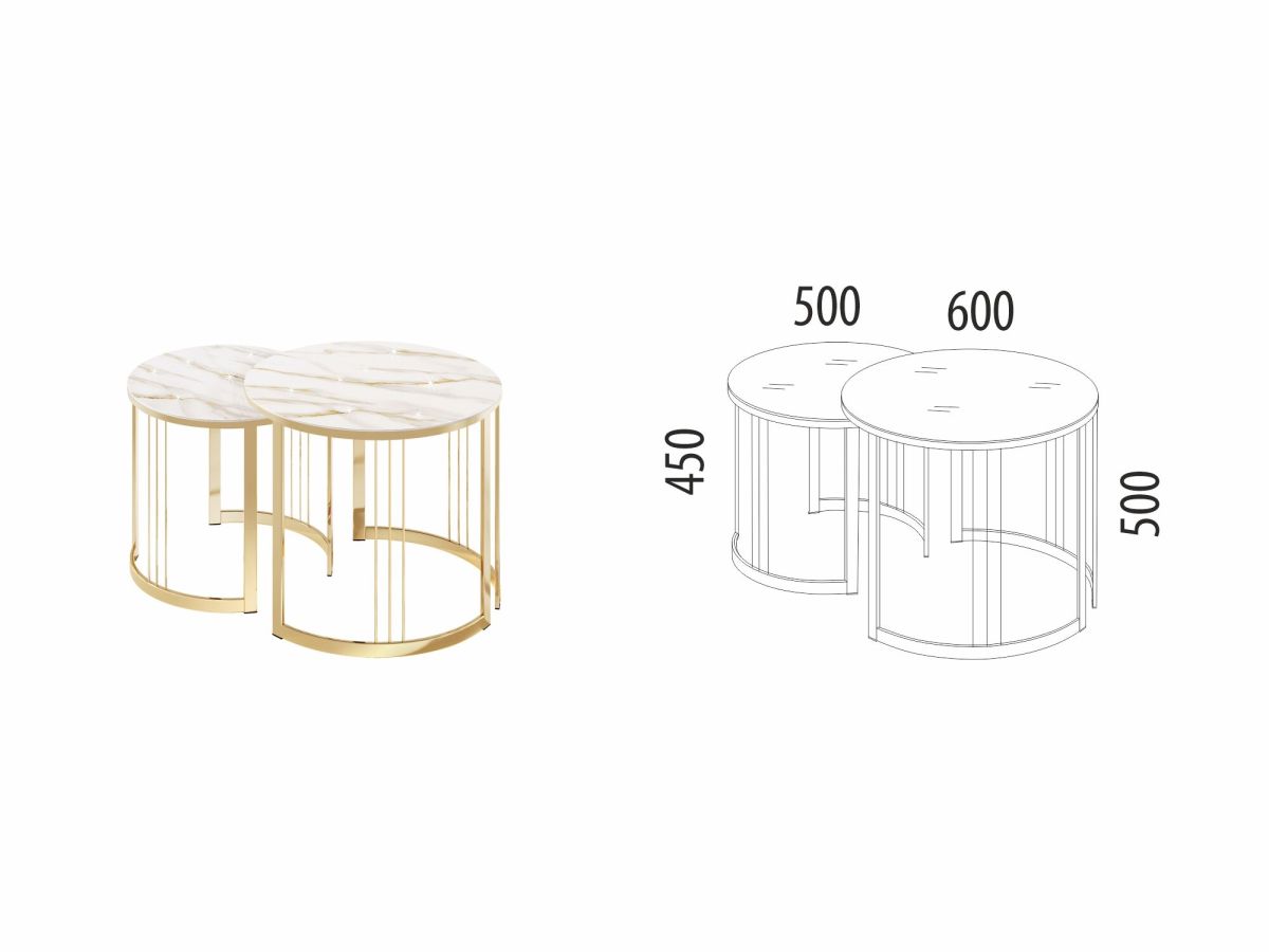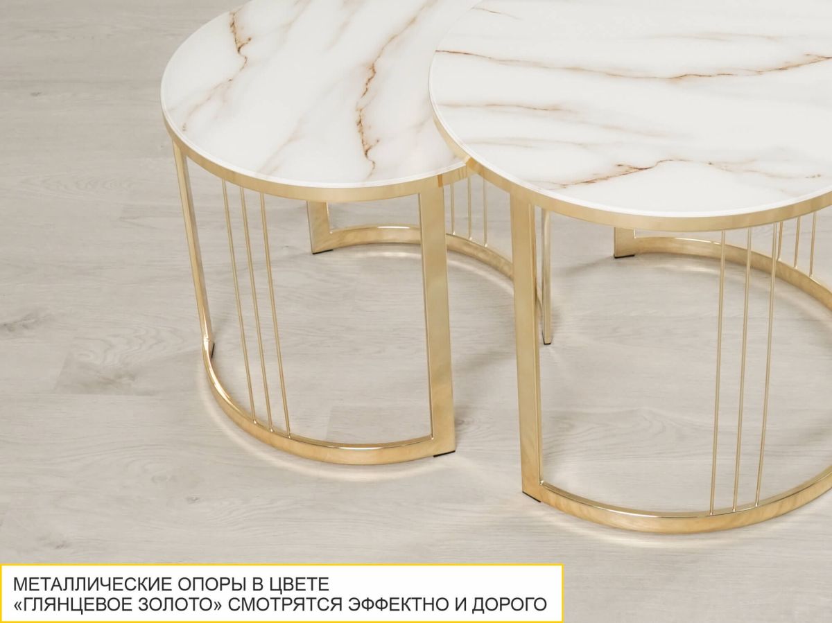 Комплект журнальных столов Агат 38 (01) Мрамор белый-Золото