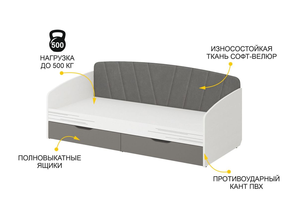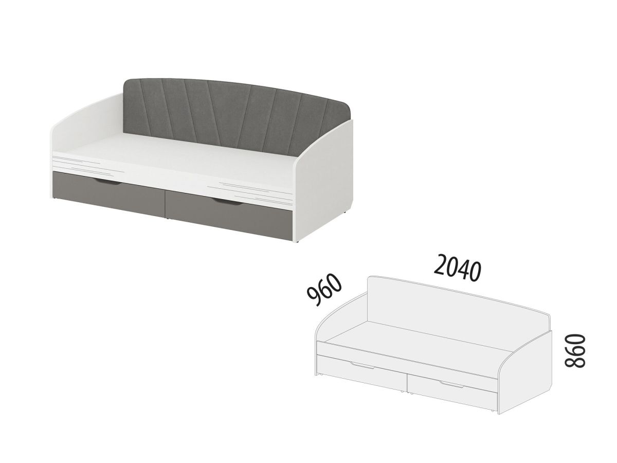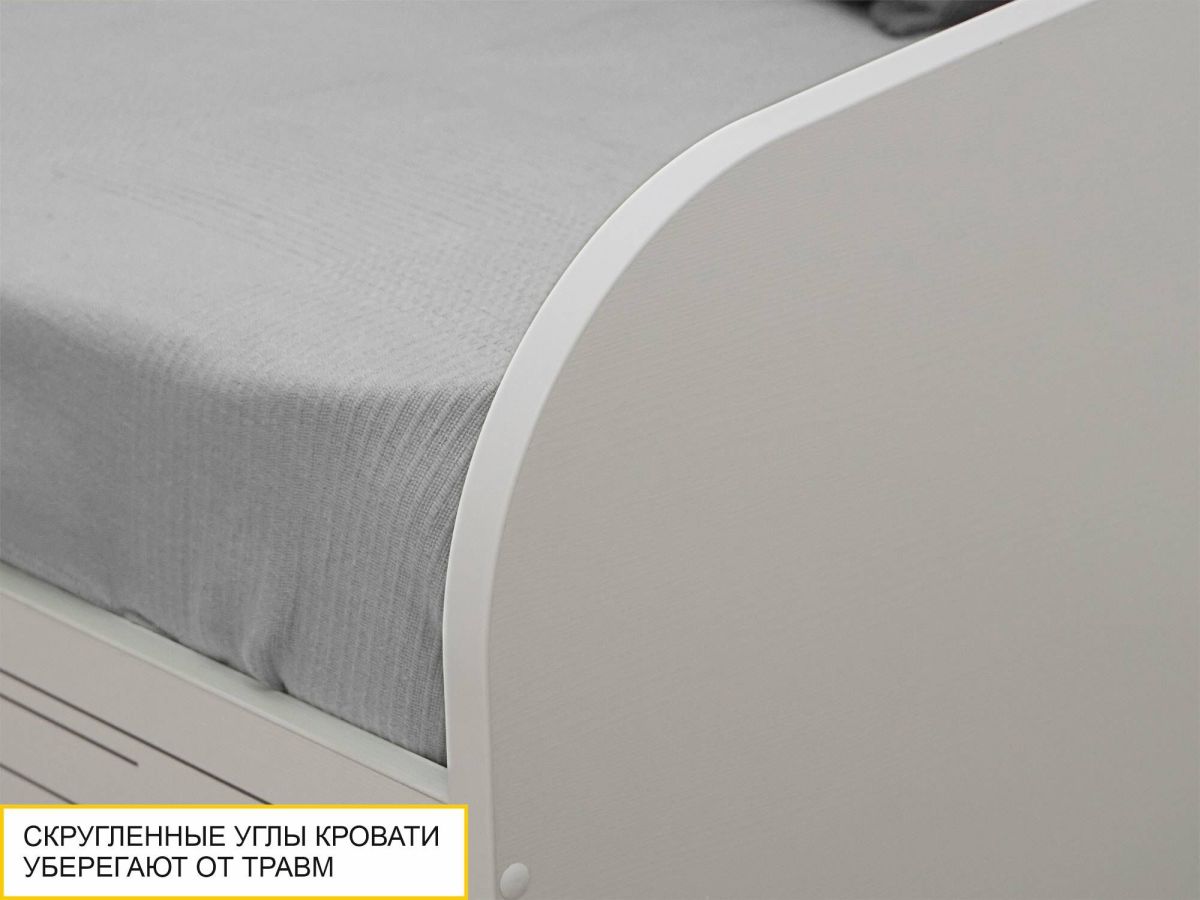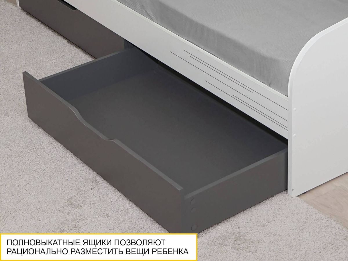 • Под кроватью установлены два вместительных выдвижных ящика для удобного хранения вещей.