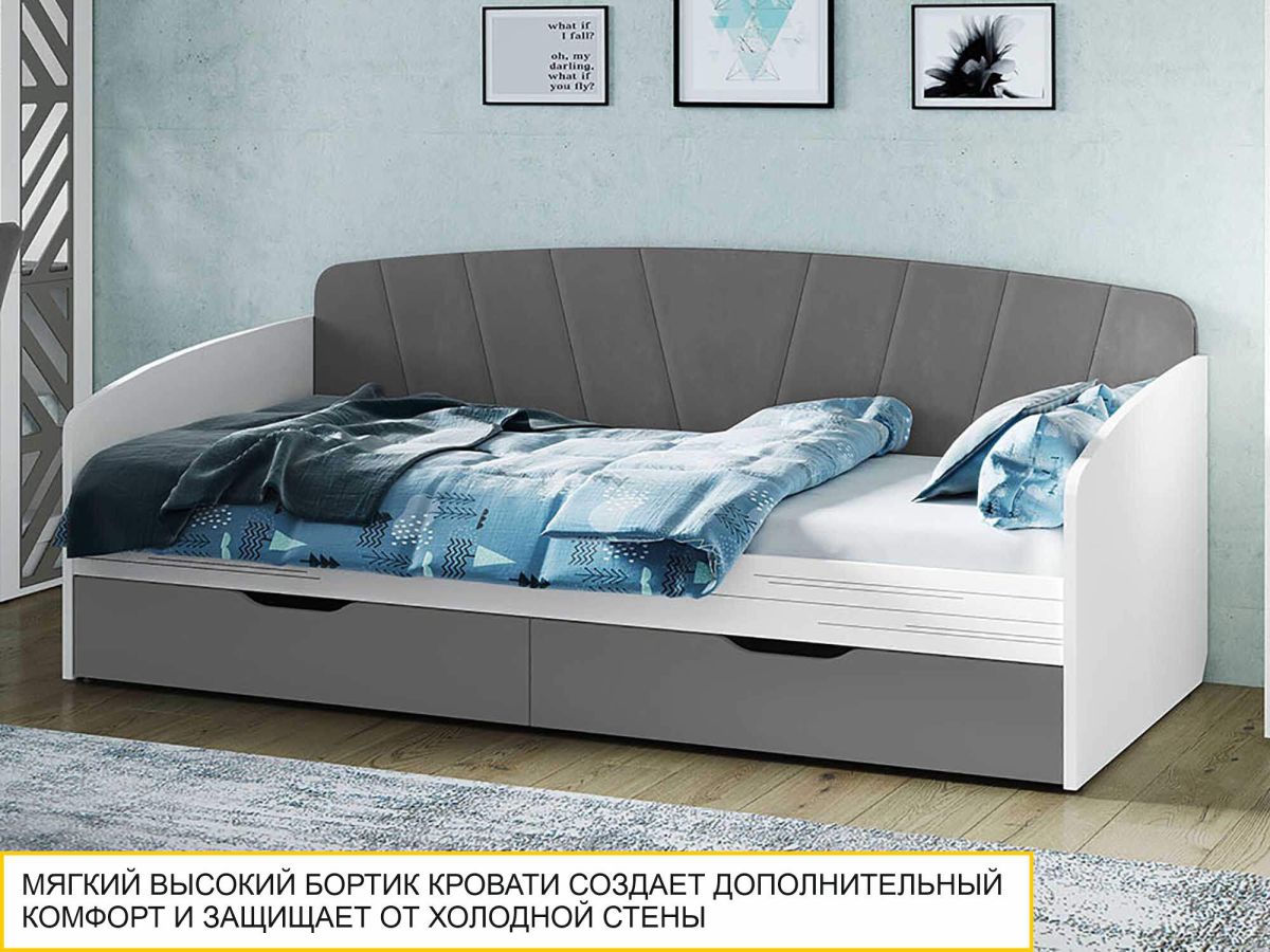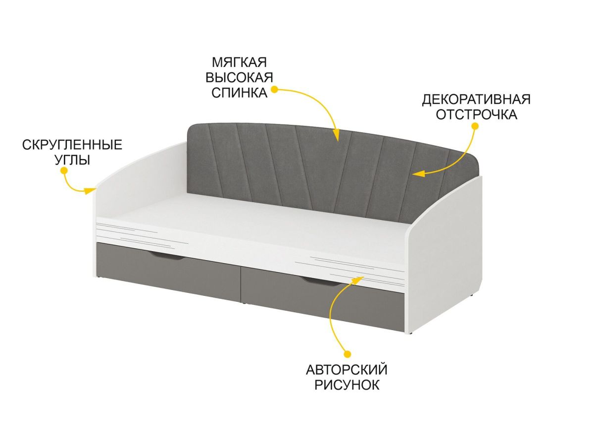 Кровать «Аляска 502.11» является частью модульной программы «Аляска 502». Эта коллекция представляет собой новый уровень комфорта и стиля. Изысканный минимализм с акцентом на функциональность делает коллекцию идеальным выбором для мечтательных и независимых подростков и их родителей.
