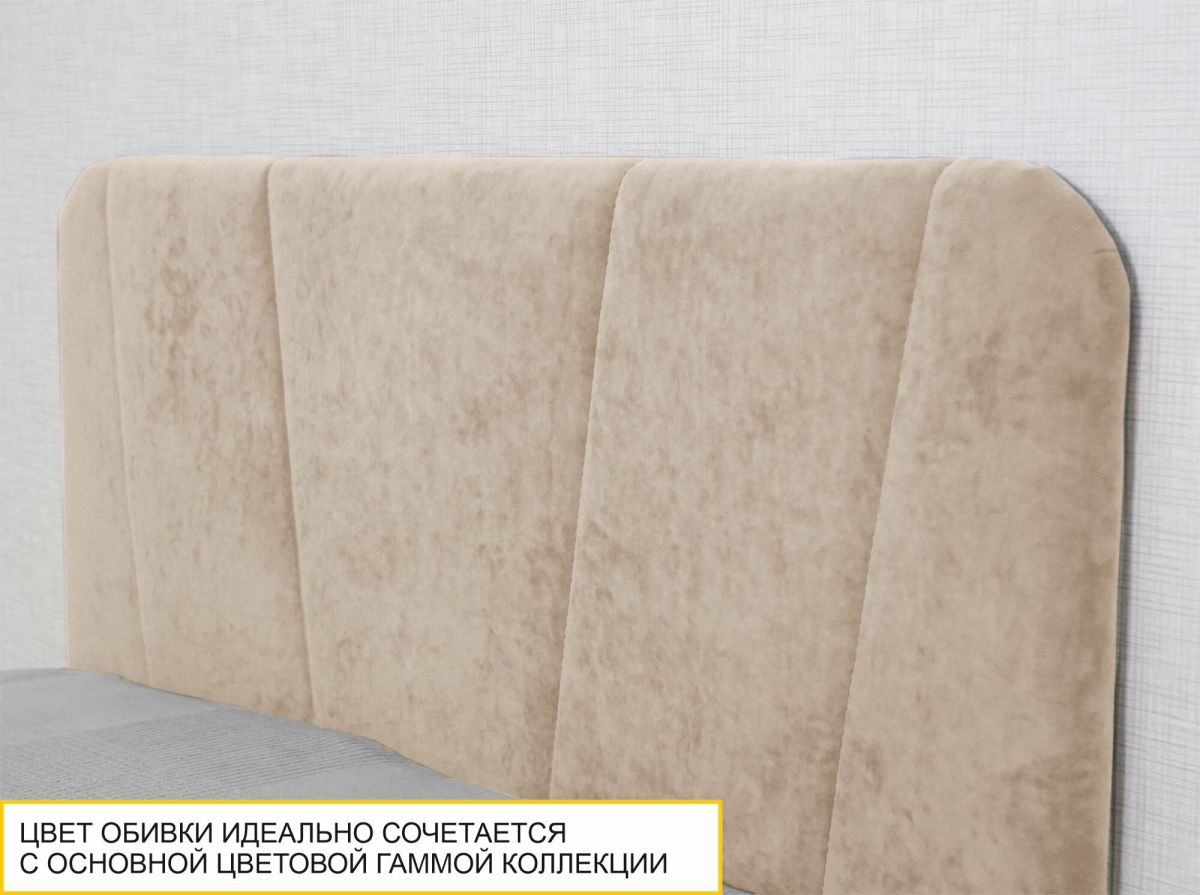 - Изголовье кровати выполнено из прочной износостойкой ткани софт-велюр, приятной на ощупь. Скругленные углы обеспечивают комфортное и безопасное использование.
