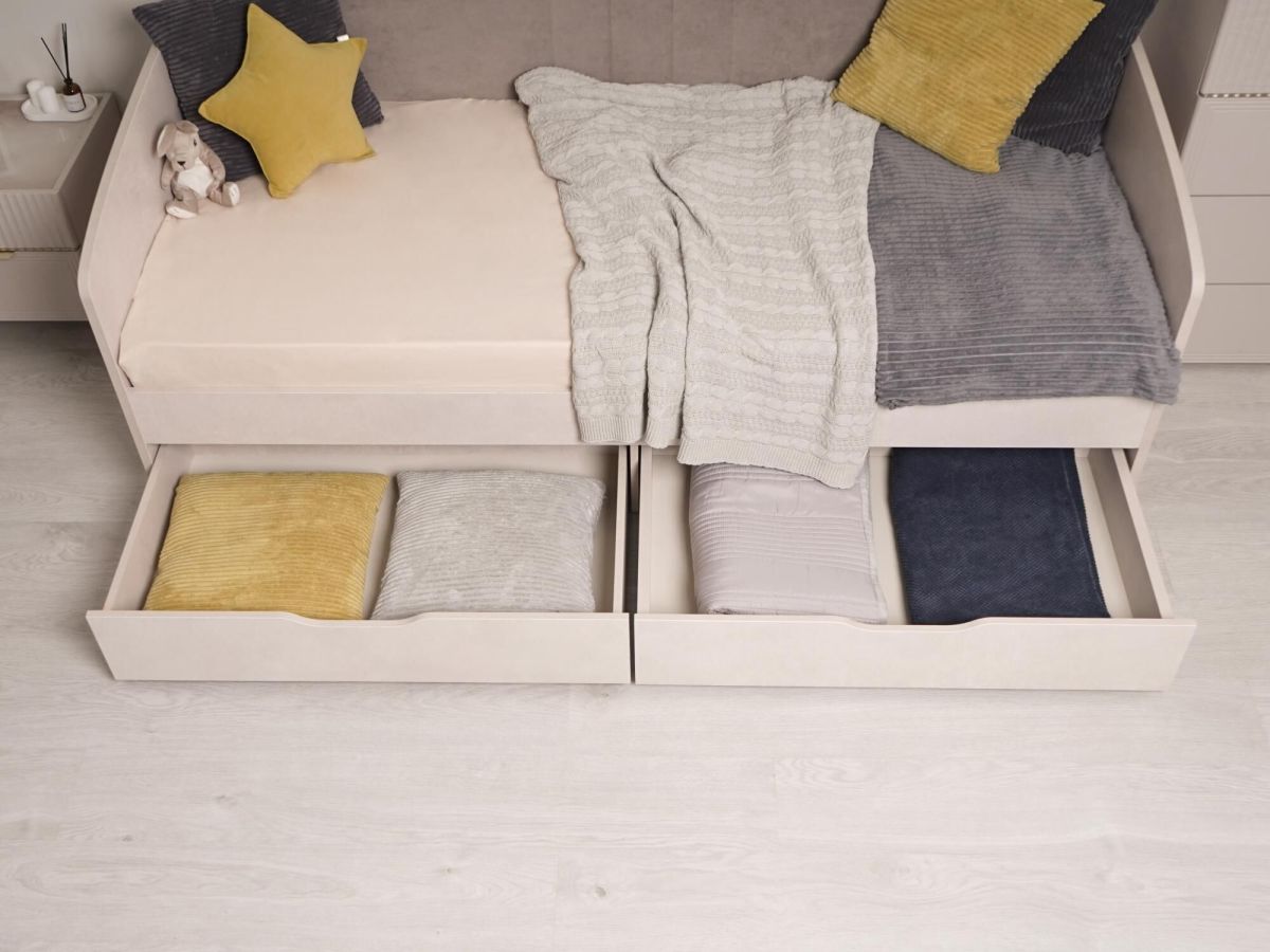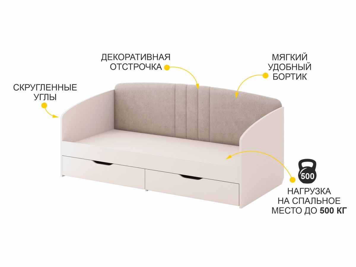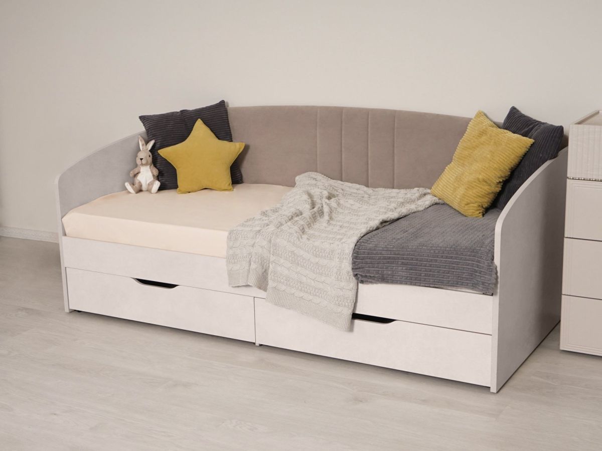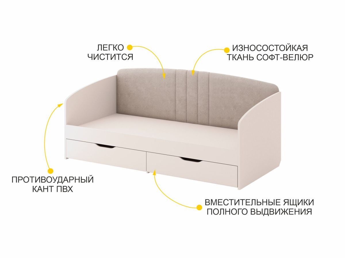 - Благодаря мягкой спинке кровать отличается повышенной степенью комфорта и защищает от холодной стены.