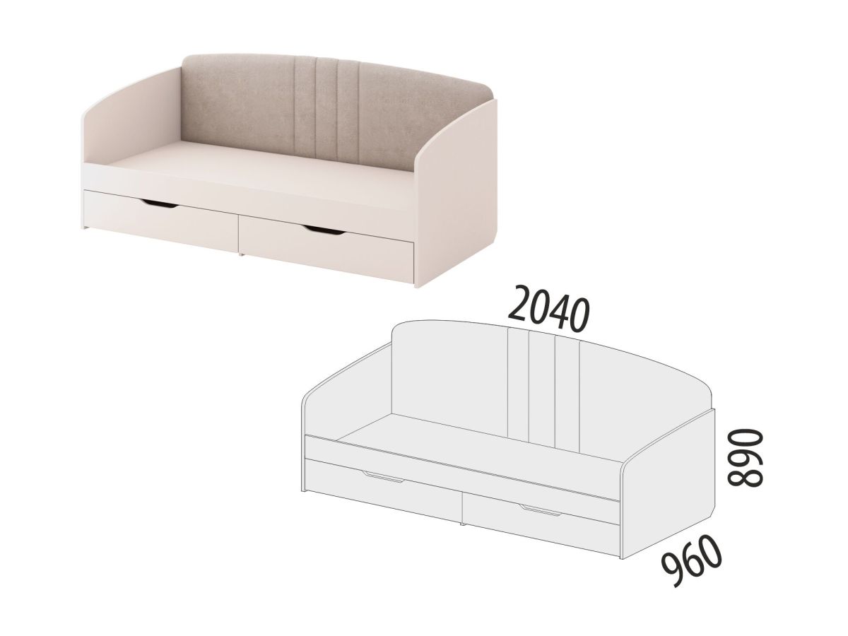 Размер спального места – 900x2000 мм.