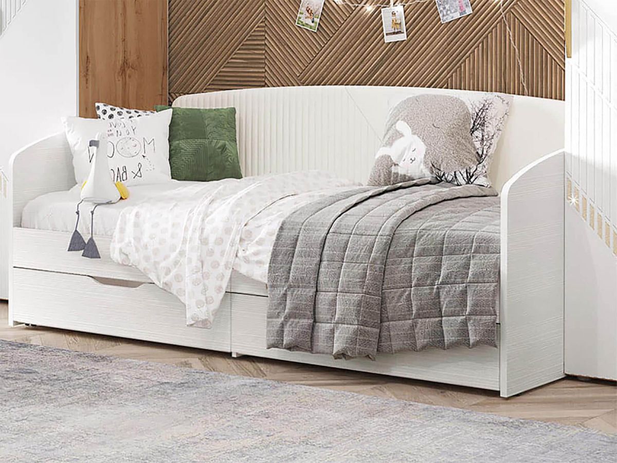 - Благодаря мягкой спинке кровать отличается повышенной степенью комфорта и защищает от холодной стены.
