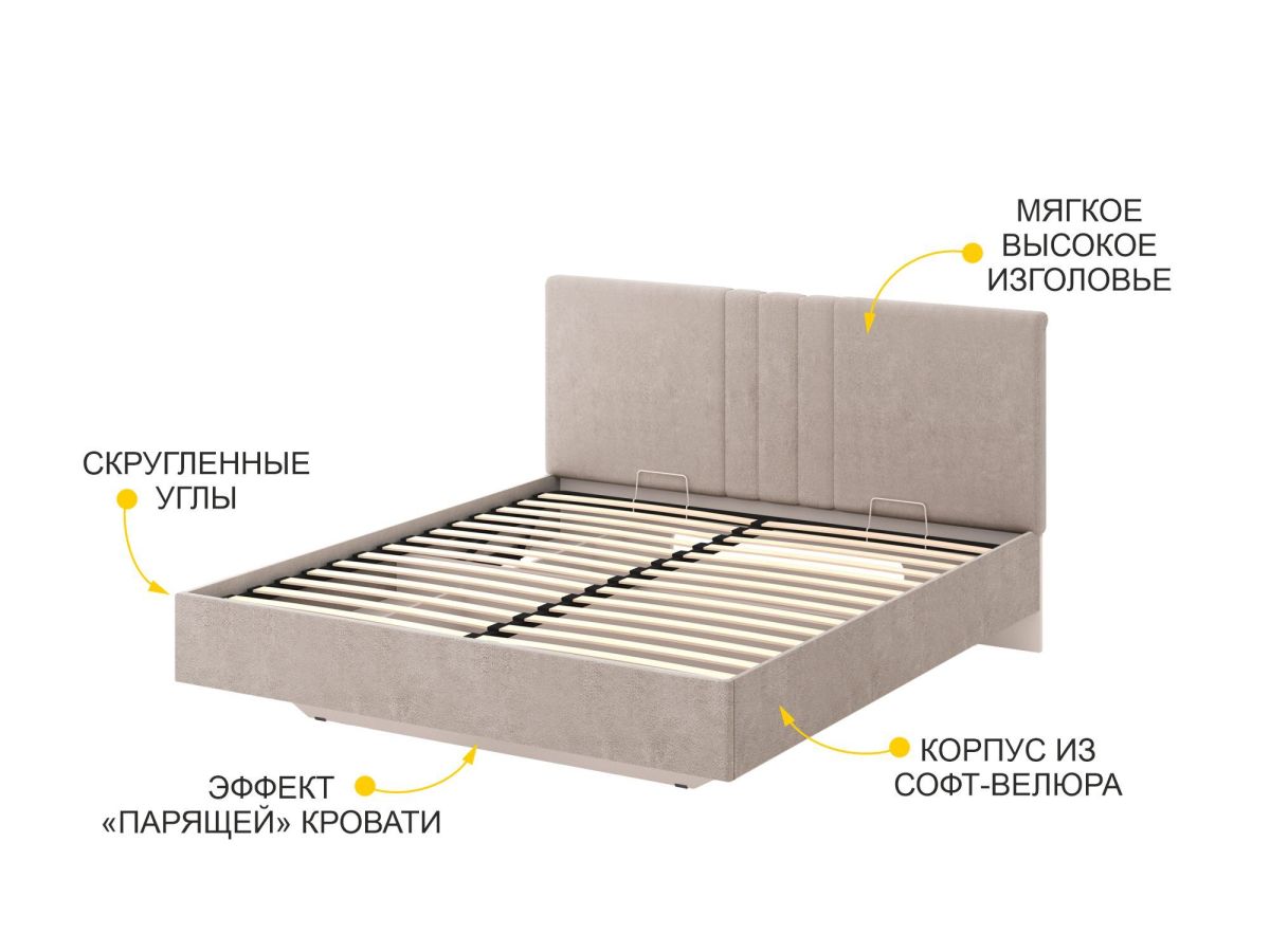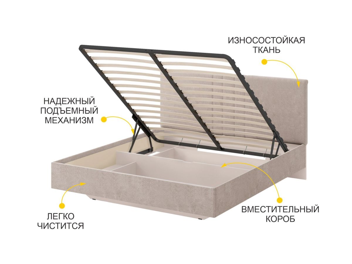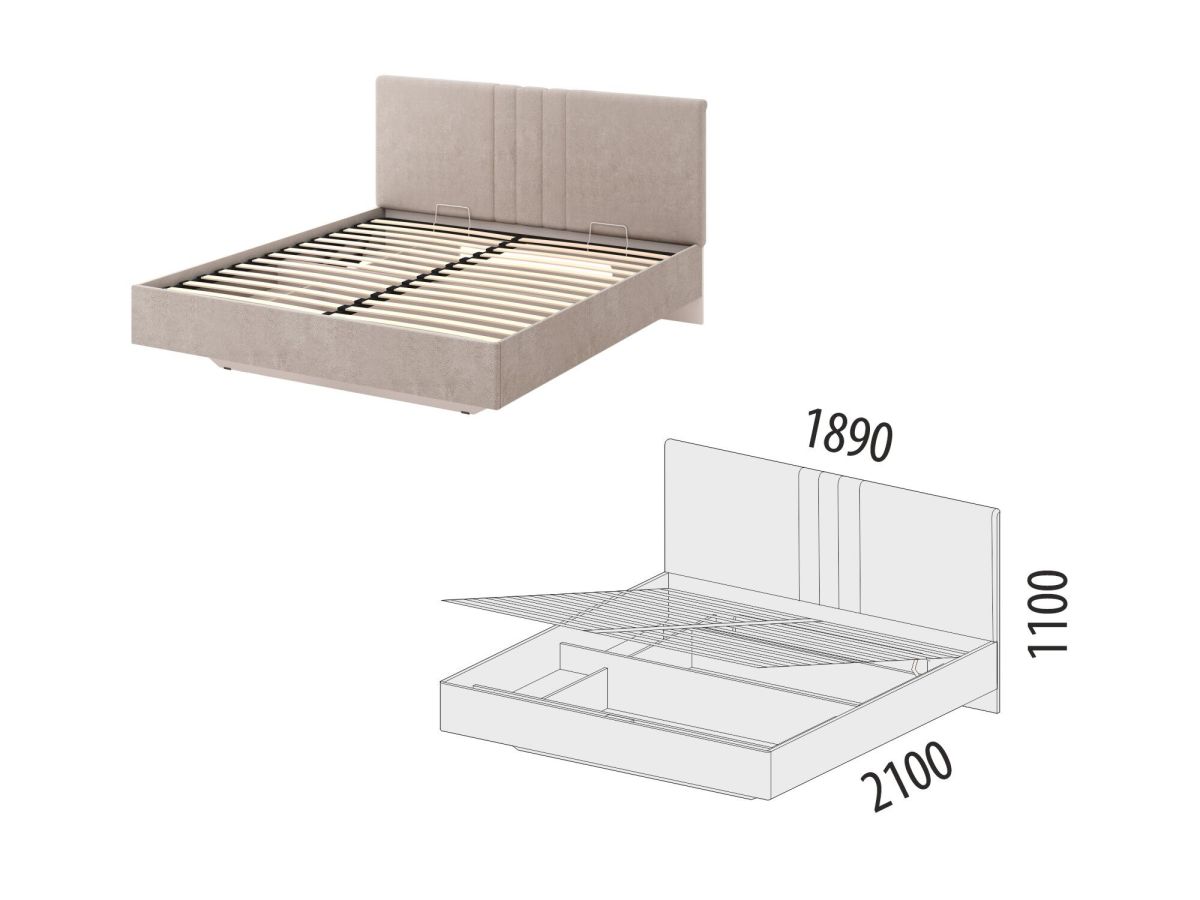 • В основании кровати предусмотрен вместительный короб для удобного хранения одеял, подушек и других вещей.
