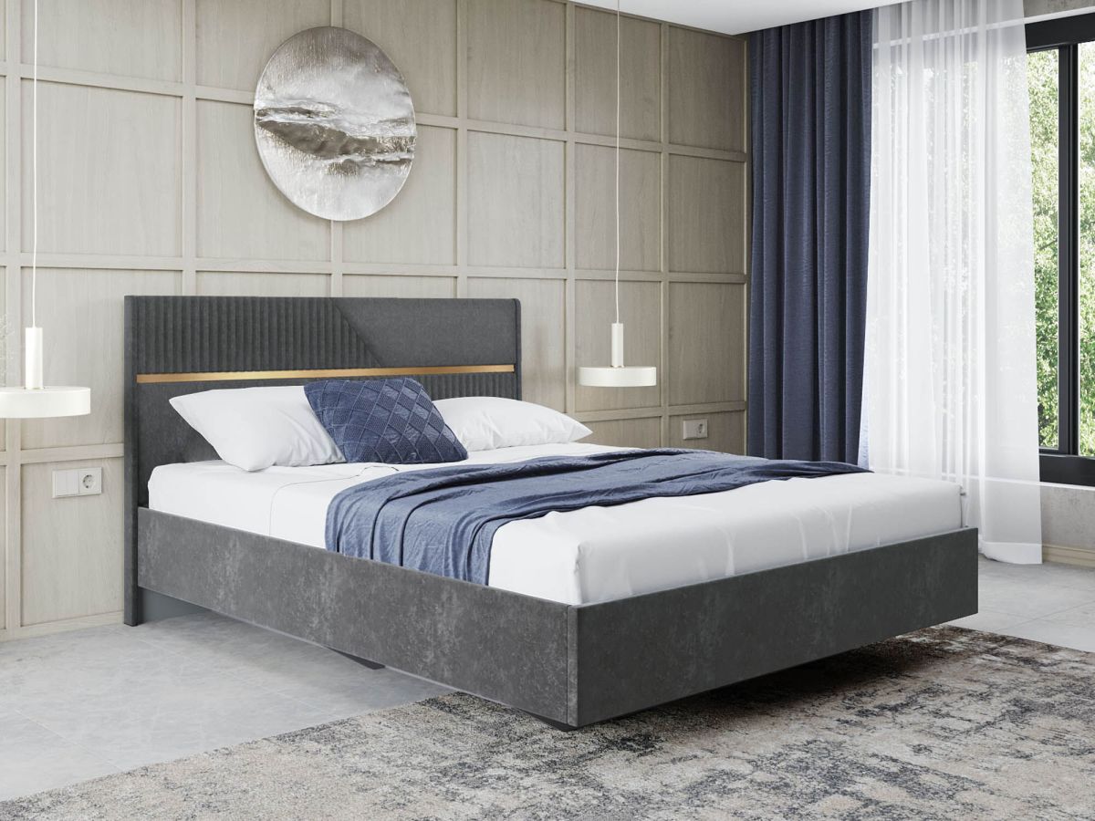 • Стильная отстрочка в сочетании с металлизированной декоративной вставкой с эффектом шлифованного золота придают кровати изысканный внешний вид.