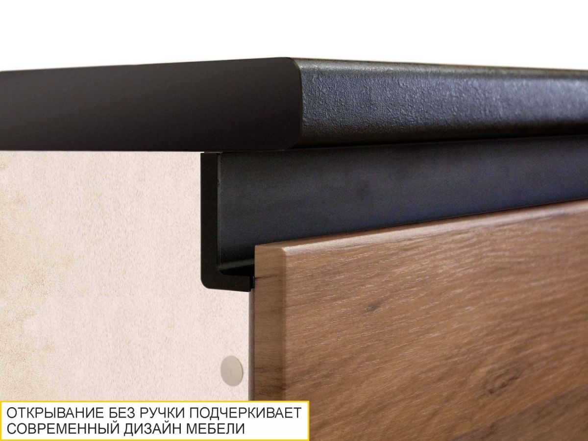 Кухня «Дакота» – воплощение современных тенденций и неповторимого стиля. Сдержанная цветовая гамма в сочетании с древесной текстурой дуба подарят ощущение тепла и уюта Вашему дому, контрастные элементы добавят выразительности и индивидуальности. Легкий 3D-декор с геометричным рисунком на фасадах верхних шкафов подчеркивает современный стиль кухни, а акцентные древесные вставки с патинированным рисунком придают оригинальный внешний вид. Декор, выполненный с технологией патинирования, не стирается и не тускнеет со временем.