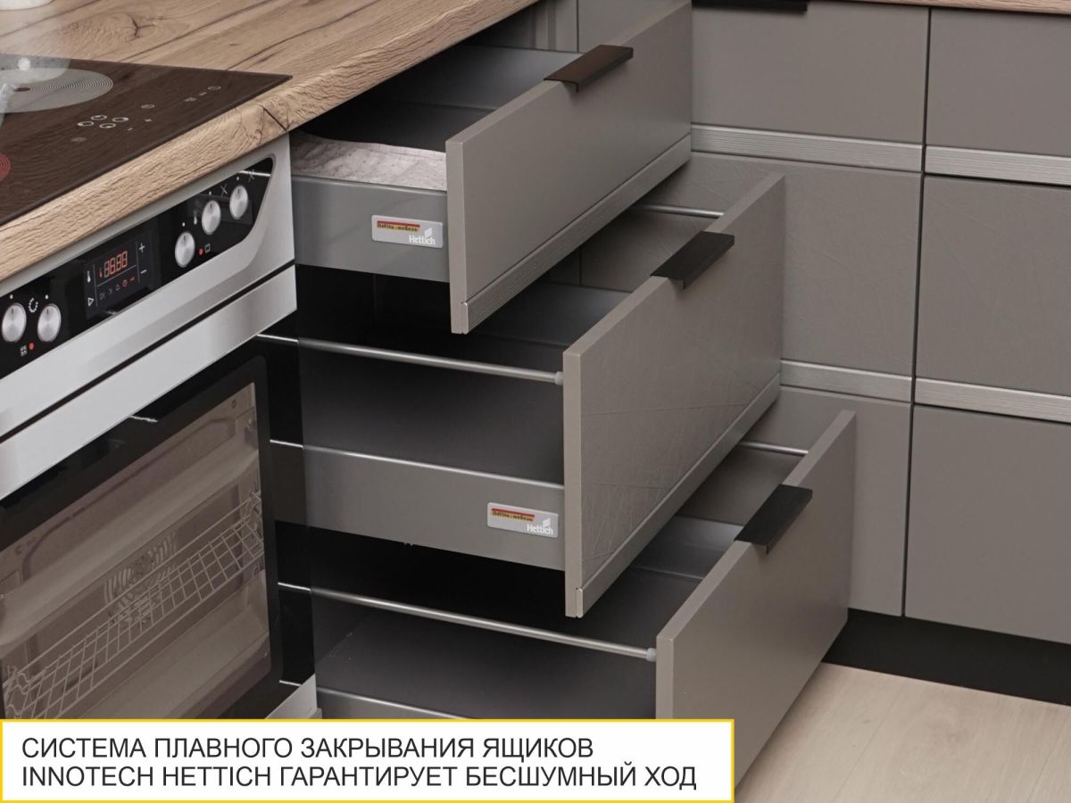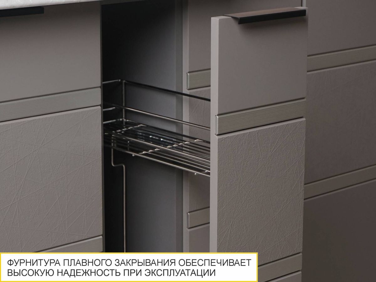 Кухня «Грейс» создана для тех, кто мечтает создать в доме пространство, наполненное природной гармонией и красотой. Глубокий темно-серый цвет создает в интерьере атмосферу спокойствия и надежности, а природное тепло натурального дерева добавляет мягкости и гармоничности. Оригинальное 3D-тиснение на фасадах, четкая линейность декоративной вставки с эффектом шлифованной платины делают дизайн необычным и привлекающим внимание. Контрастные акценты придают кухне выразительность и индивидуальность. Кухня «Грейс» обладает особой энергетикой, которая подчеркивает безупречное чувство стиля и внутреннюю свободу своих хозяев. Умело подобранные аксессуары позволят Вам с легкостью менять характер интерьера в зависимости от настроения/трендов.