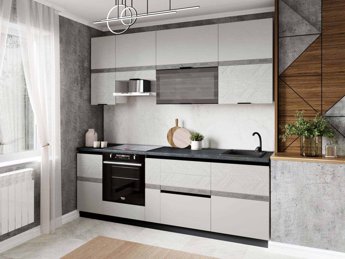 Кухня «Бостон» - воплощение современных тенденций и неповторимого стиля. Отличительная особенность коллекции – сочетание лаконичных форм и высокой функциональности. Актуальный серый цвет является универсальным и легко сочетается с различными цветами и фактурами. Объемное дизайнерское тиснение на фасадах подчеркивает современный стиль кухни. Рельефный рисунок придает оригинальный внешний вид. Контрастные акцентные вставки на фасадах с объемным патинированным рисунком создают сложный образ и придают индивидуальность Вашей кухне.
