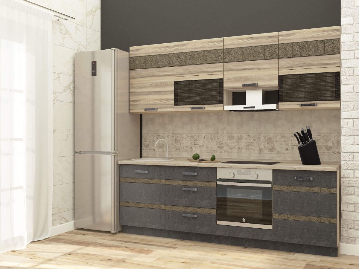 Кухня «Бруклин» – функциональная, как городская среда, и уютная, как уикенд на природе. Поможет создать комфортный заряжающий энергией интерьер в гармонии с окружающей средой. Выполнена в современном экостиле. Модное цветовое сочетание, контрастные металлические ручки, декор, точно передающий фактуру натурального дерева как на ощупь, так и визуально, придают кухне выразительность и неповторимость.