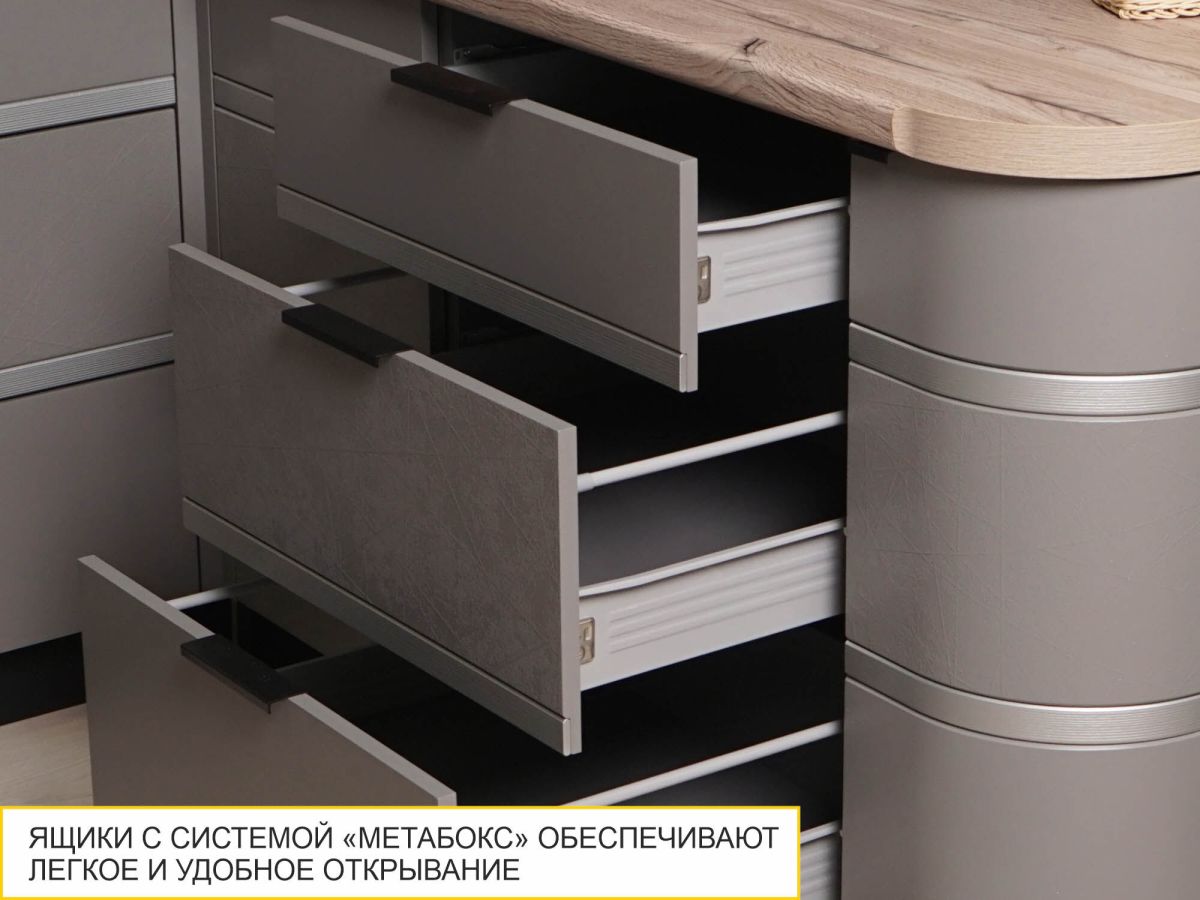 Кухня «Грейс» создана для тех, кто мечтает создать в доме пространство, наполненное природной гармонией и красотой. Глубокий темно-серый цвет создает в интерьере атмосферу спокойствия и надежности, а природное тепло натурального дерева добавляет мягкости и гармоничности. Оригинальное 3D-тиснение на фасадах, четкая линейность декоративной вставки с эффектом шлифованной платины делают дизайн необычным и привлекающим внимание. Контрастные акценты придают кухне выразительность и индивидуальность. Кухня «Грейс» обладает особой энергетикой, которая подчеркивает безупречное чувство стиля и внутреннюю свободу своих хозяев. Умело подобранные аксессуары позволят Вам с легкостью менять характер интерьера в зависимости от настроения/трендов.