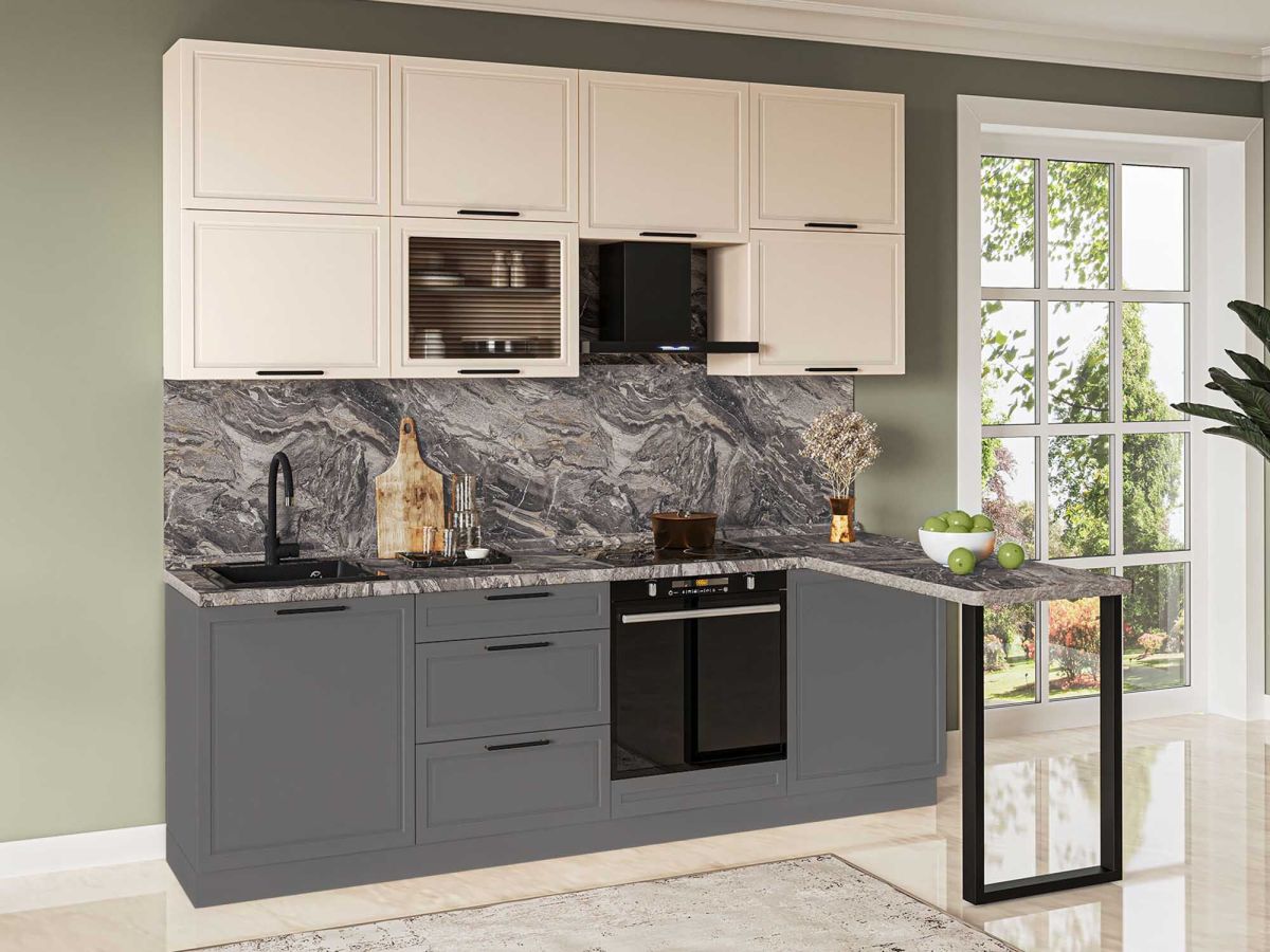 Столешница, плинтус, стеновая панель, опора для барной стойки, мойка и смеситель не входят в состав набора, Вы можете их приобрести отдельно в нашем интернет-магазине.