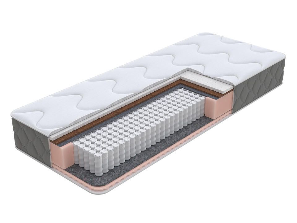 Матрас на основе натуральных и современных материалов, имеет в составе эластичный пенный ортофом с микромассажным эффектом, который поддерживает естественные изгибы тела и обеспечивает комфортный сон на протяжении длительного времени. Кокосовая койра в составе придает жесткость матрасу, а натуральный латекс необходимую упругость. Блоком с 1000 независимых пружин обеспечивает высокое качество поддержки, вне зависимости от индивидуальных особенностей спящего.