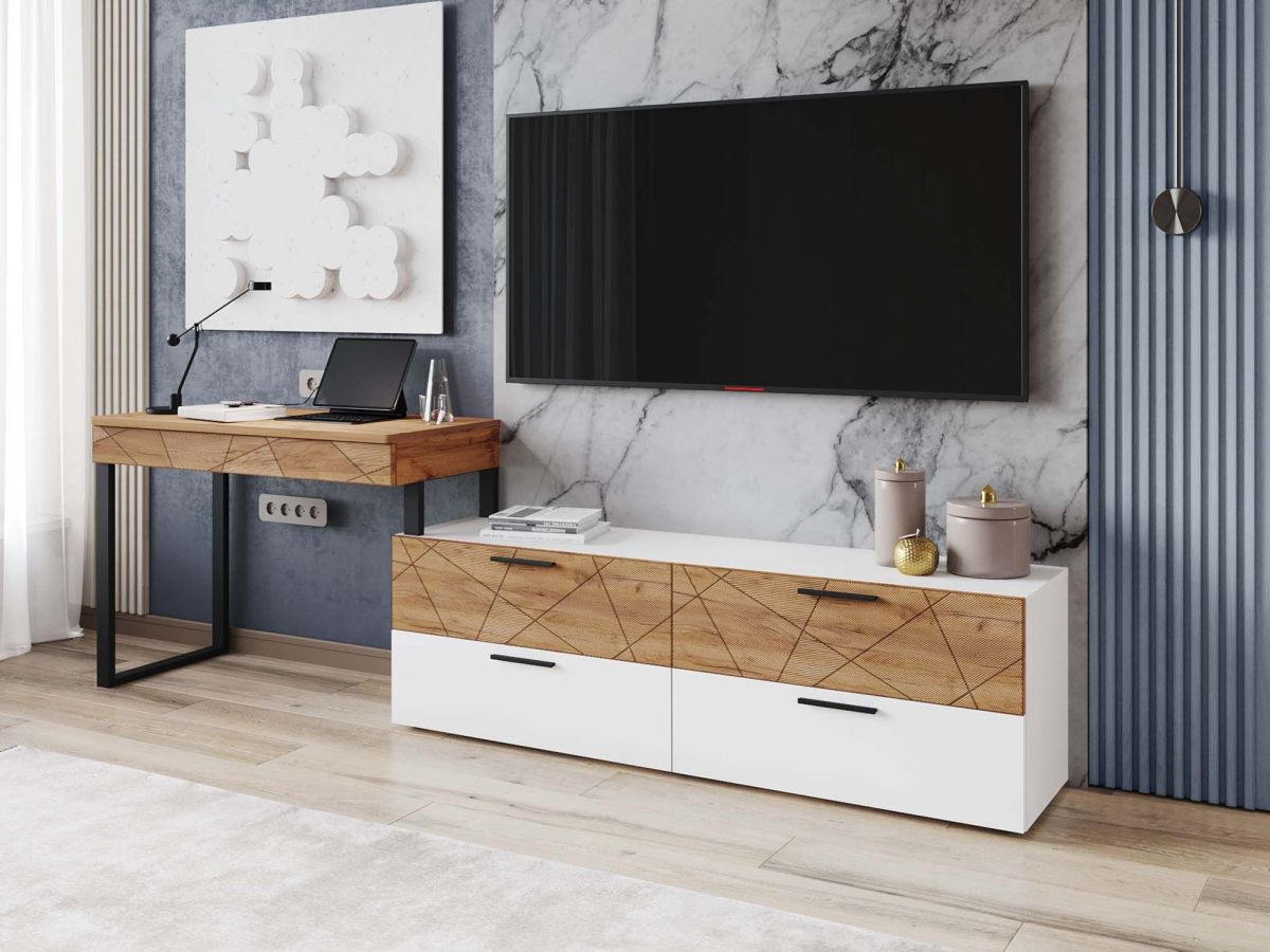 Инновационное решение - компьютерный стол, интегрированный в стенку гостиной. Такая компоновка сочетает в себе великолепный стиль, максимальную функциональность рабочего места и экономию пространства.