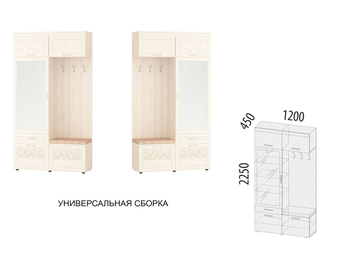 Мини-прихожая «Тиффани 47.07.1» является частью модульной программы «Тиффани». Прихожая «Тиффани» - символ классического стиля и незабываемого шарма. Нежные светлые фасады и изысканный ажурный декор с кристаллами премиум-класса – отличительная черта коллекции.
