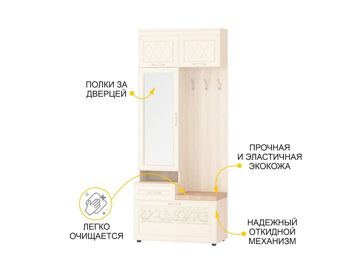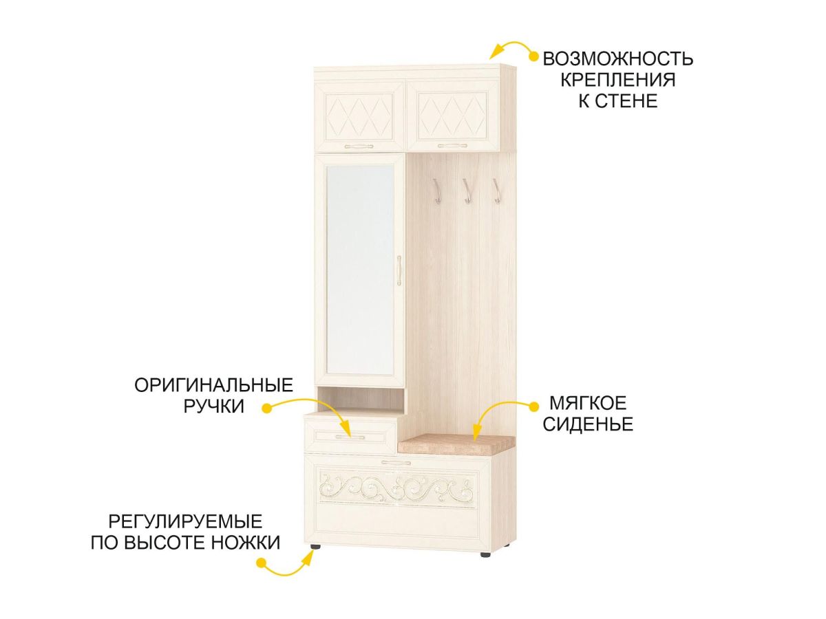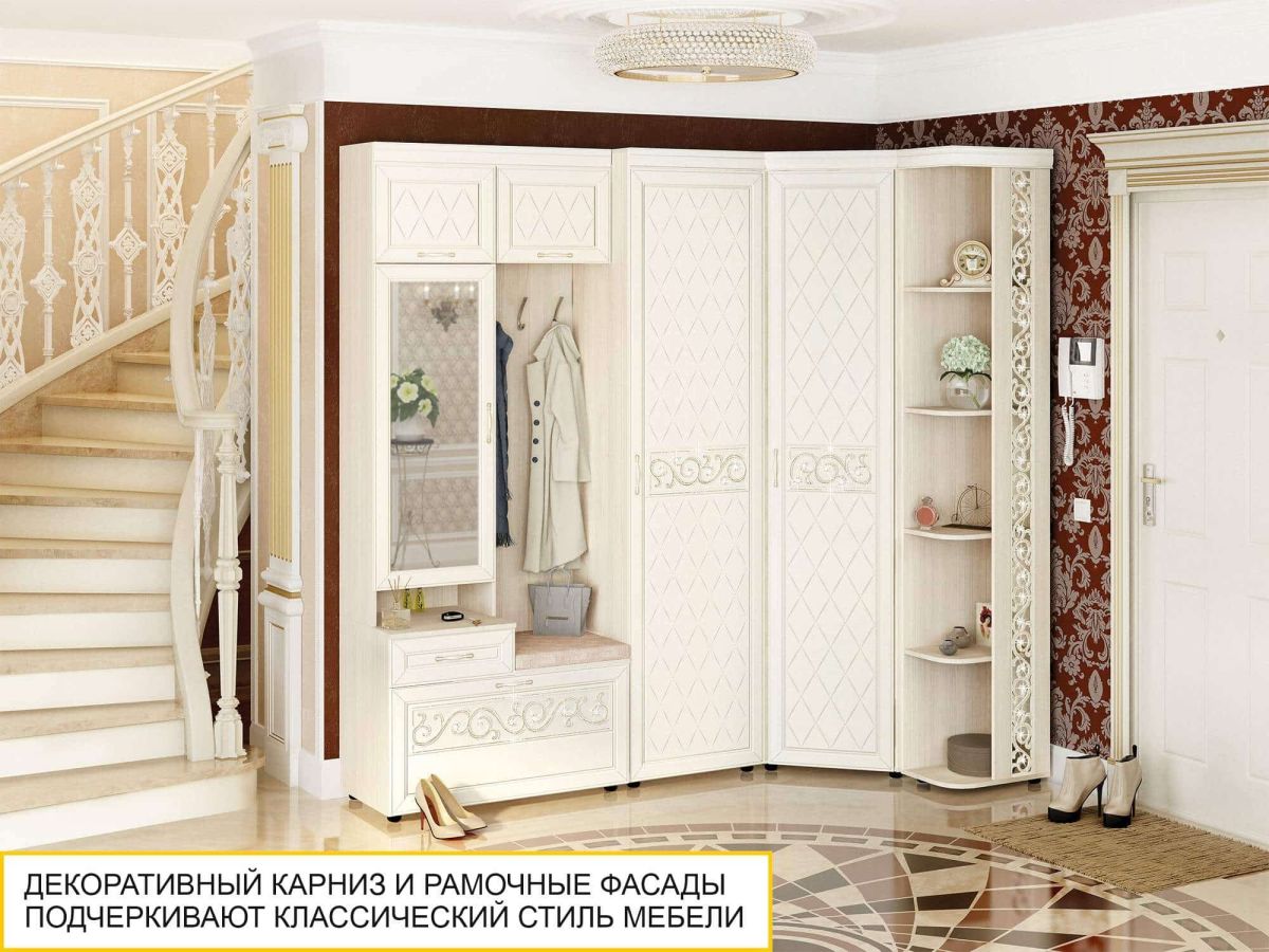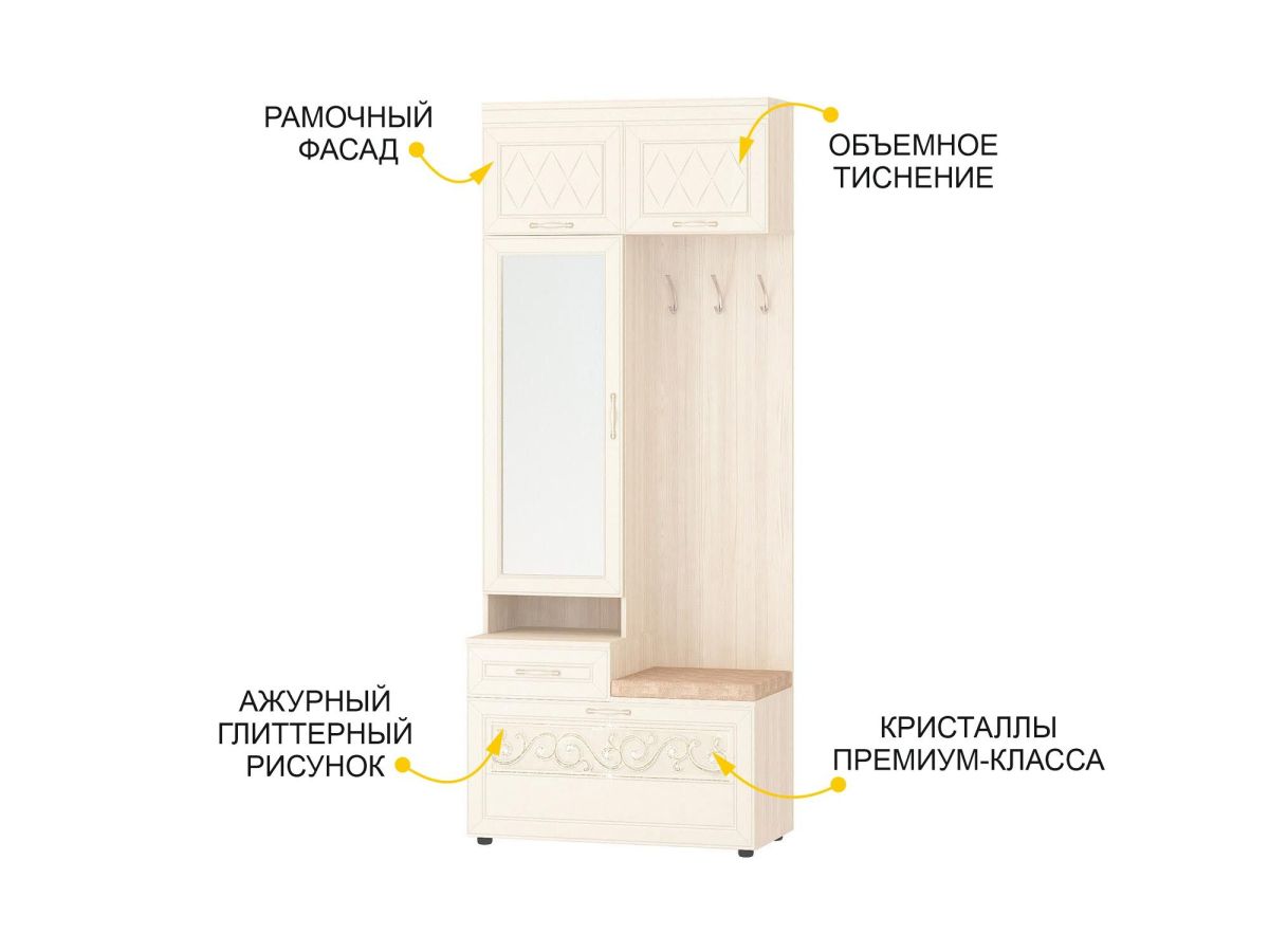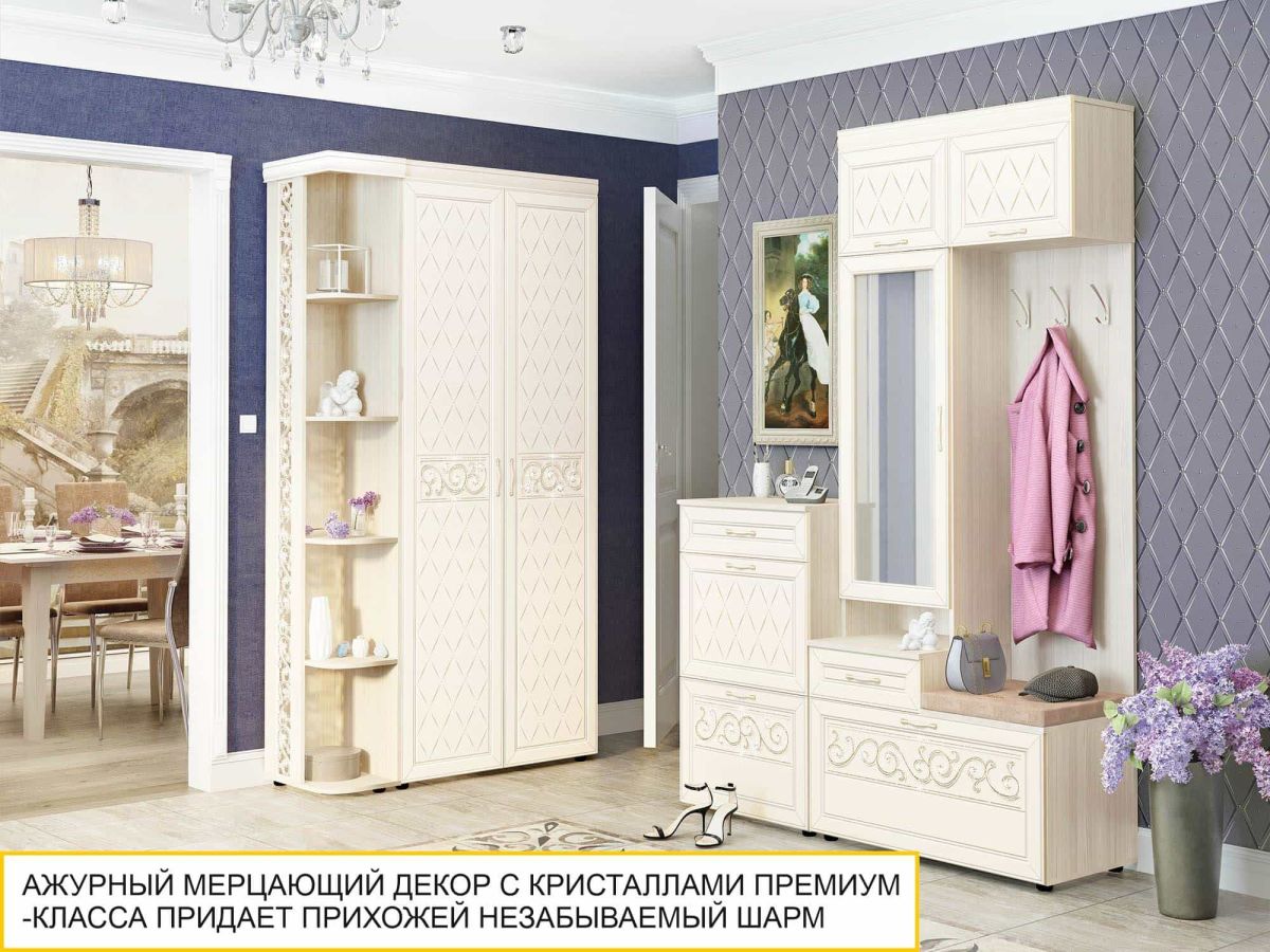 Мини-прихожая «Тиффани 47.08.1» является частью модульной программы «Тиффани». Прихожая «Тиффани» - символ классического стиля и незабываемого шарма. Нежные светлые фасады и изысканный ажурный декор с кристаллами премиум-класса – отличительная черта коллекции.