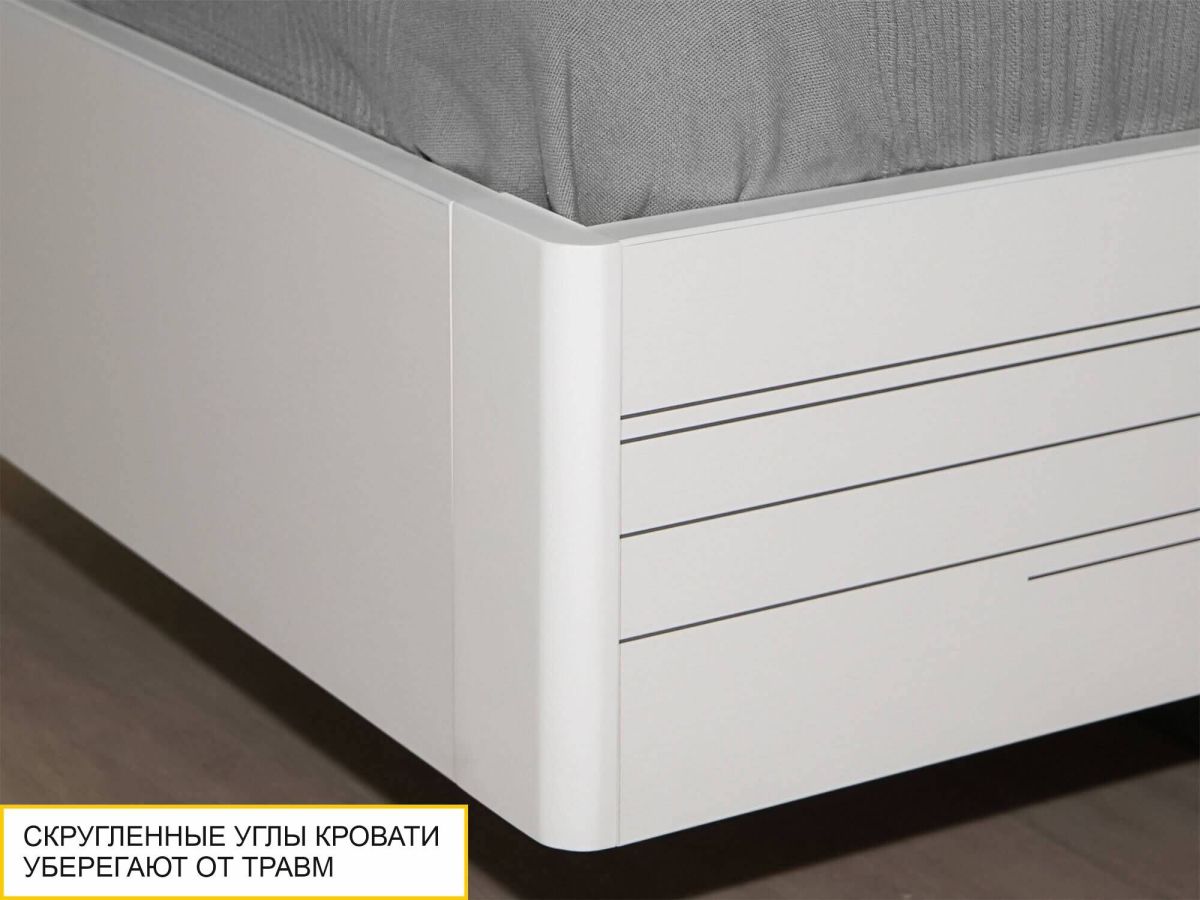 - Кровать укомплектована ортопедическим основанием с ламелями, которое помогает телу принимать правильное положение во время сна и отдыха. Также оно позволяет матрасу «дышать», оберегает его от деформации и значительно продлевает срок службы.