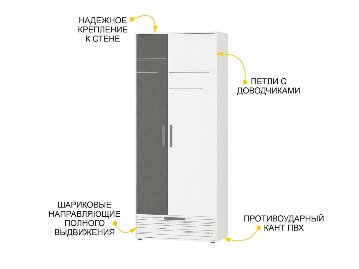 - Надежное крепление шкафа к стене гарантирует безопасную эксплуатацию (крепежная фурнитура в комплекте).