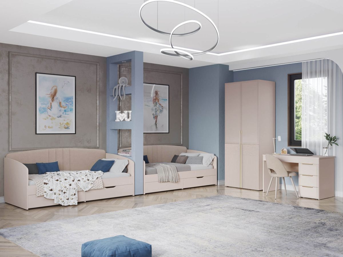 Набор мебели для детской «Флоренция 904 250» - это образец изящности и современной роскоши. Нежный цвет «Кашемир» создает светлую и теплую основу в интерьере, которая наполняет пространство спокойствием и гармонией. Оригинальные элементы в цвете «сатиновое золото», элегантная фрезеровка и изящный дизайнерский рисунок подчеркивают утонченный дизайн коллекции.