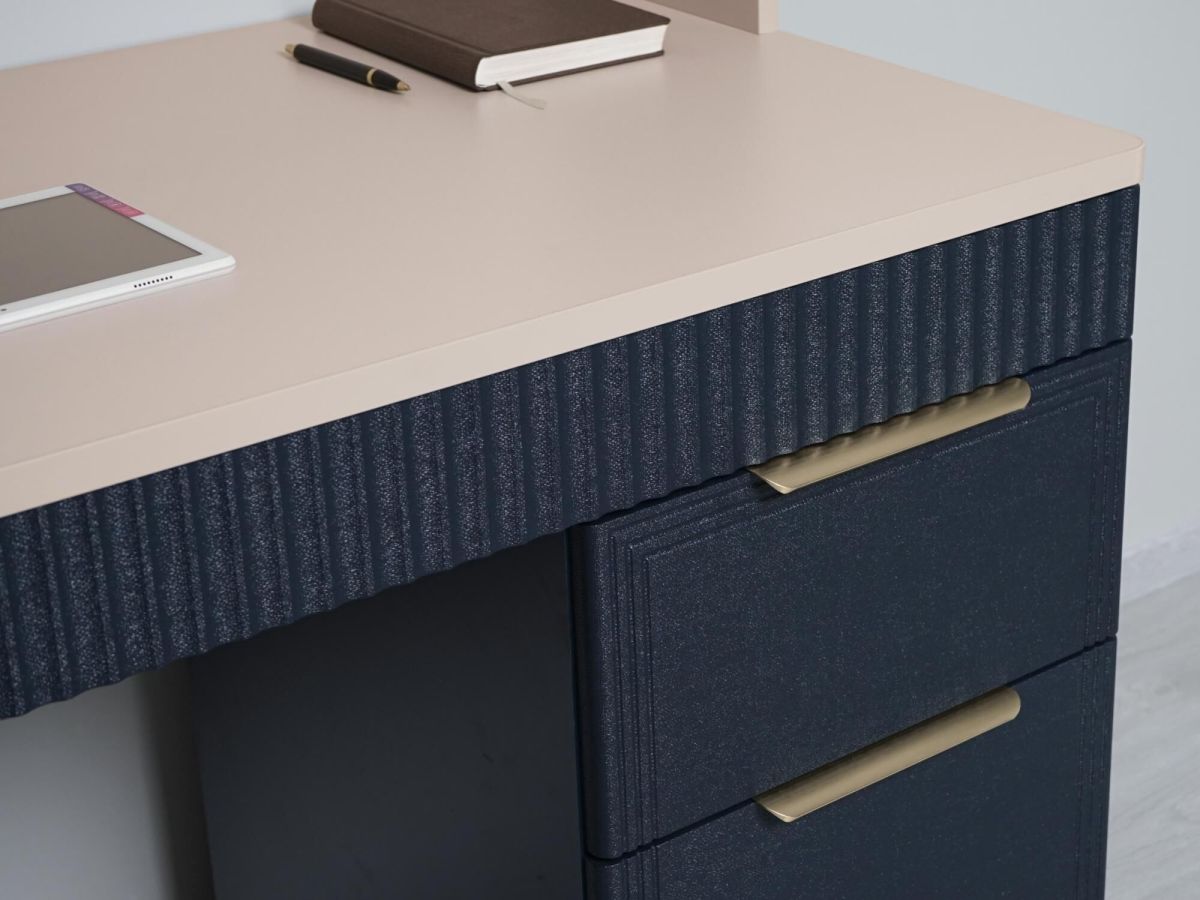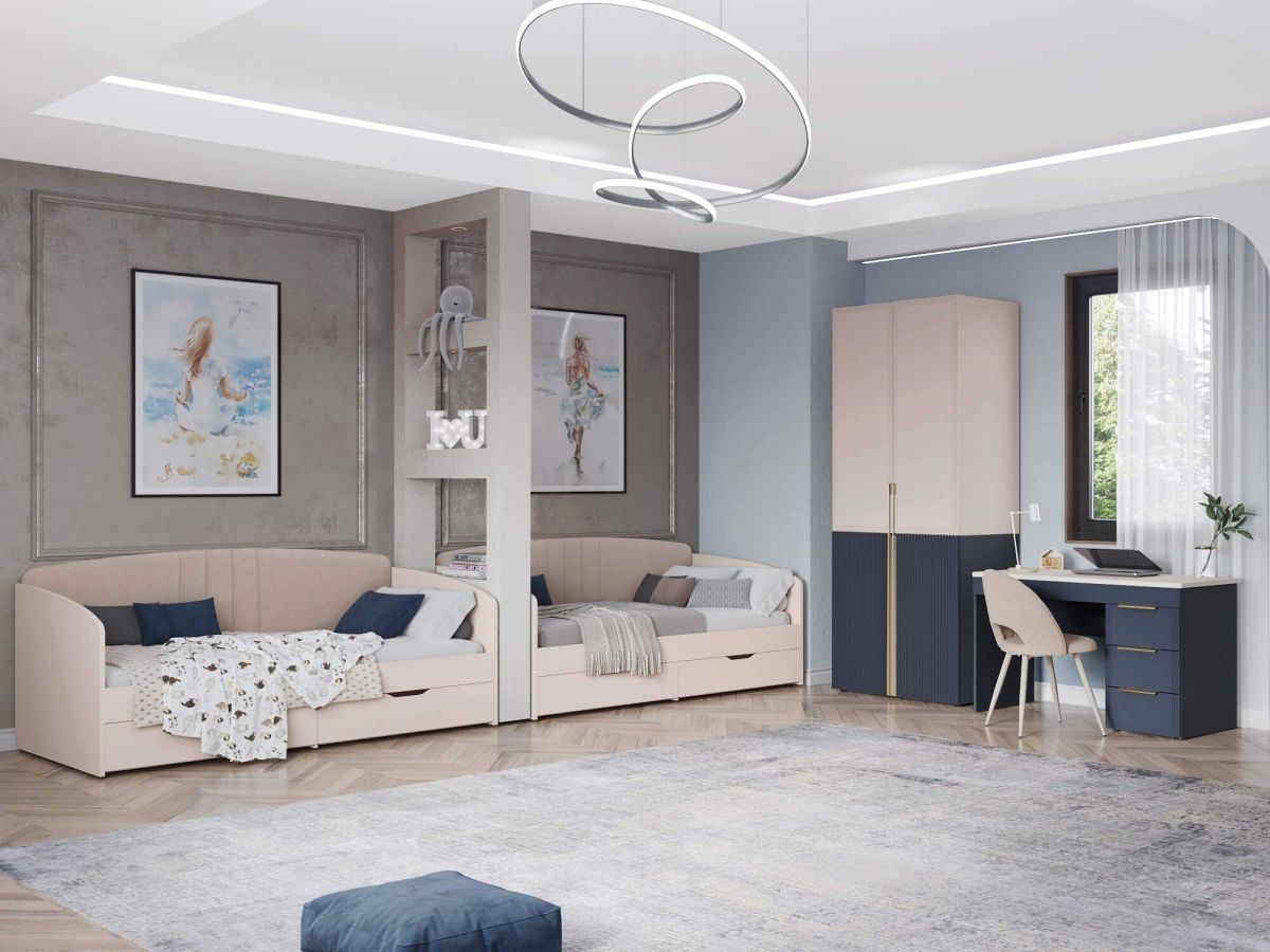Набор мебели для детской «Флоренция 905 250» - это образец изящности и современной роскоши. Цвета «Кашемир» и «Индиго» образуют стильный и теплый дуэт: светлый тон наполняет пространство мягкостью, а насыщенный темно-синий придает интерьеру глубину и изысканность. Оригинальные элементы в цвете «сатиновое золото» и элегантная фрезеровка подчеркивают утонченный дизайн коллекции.