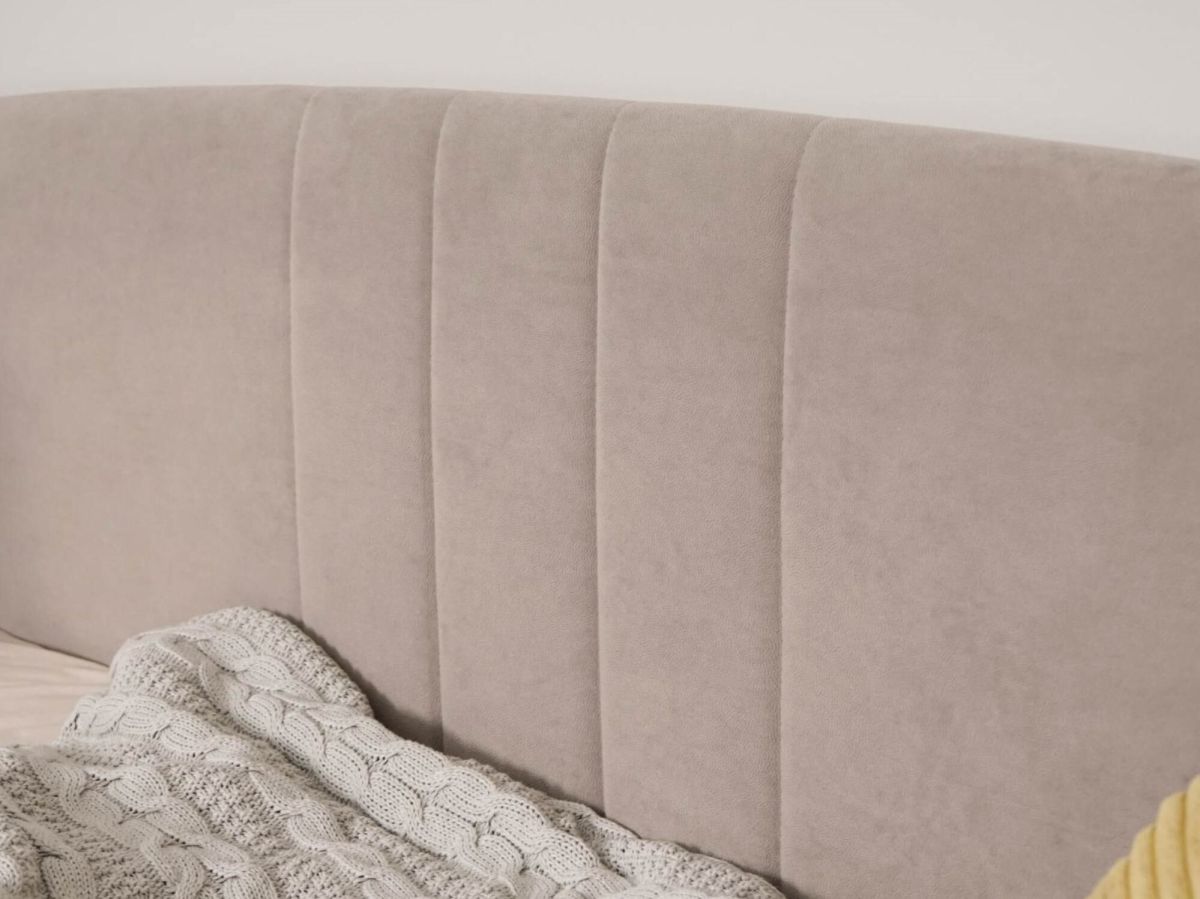 - Спинка кровати обтянута прочной и износостойкой тканью, приятной на ощупь. Актуальный цвет «Даллас Кашемир» сочетает в себе теплоту и гармонию.