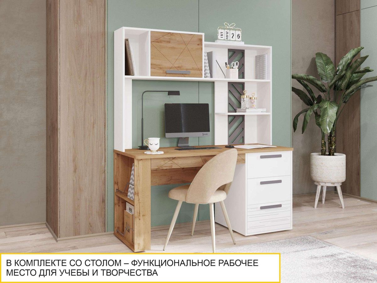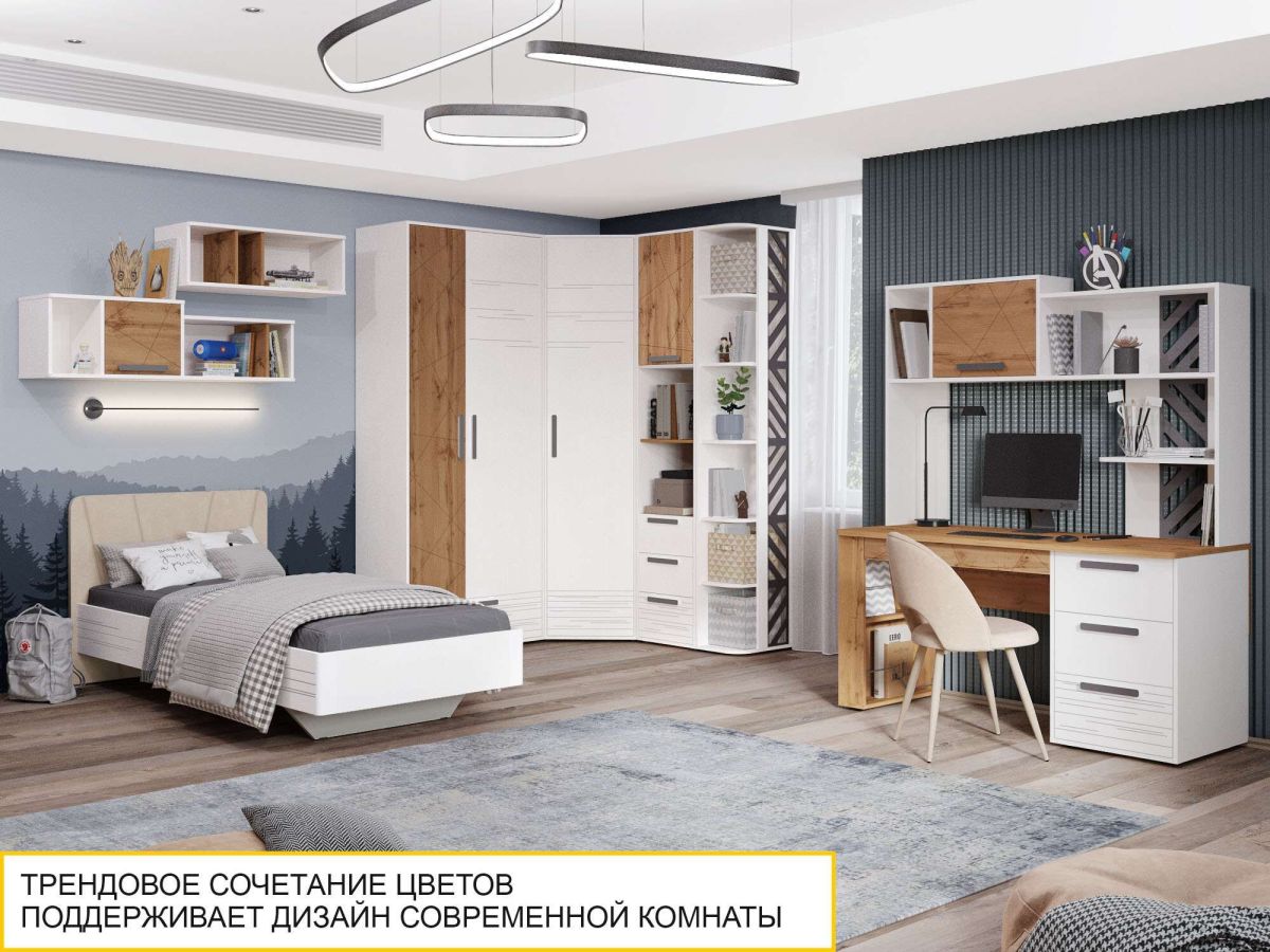 Надстройка «Аляска 503.25» является частью модульной программы «Аляска 503». Коллекция подростковой «Аляска 503» - это современное и функциональное пространство для жизни и учебы. Сочетание белоснежных фасадов с теплым оттенком натурального дерева создает стильный образ коллекции, а универсальный дизайн отлично подойдет как юношам и девушкам, так и детям дошкольного возраста.