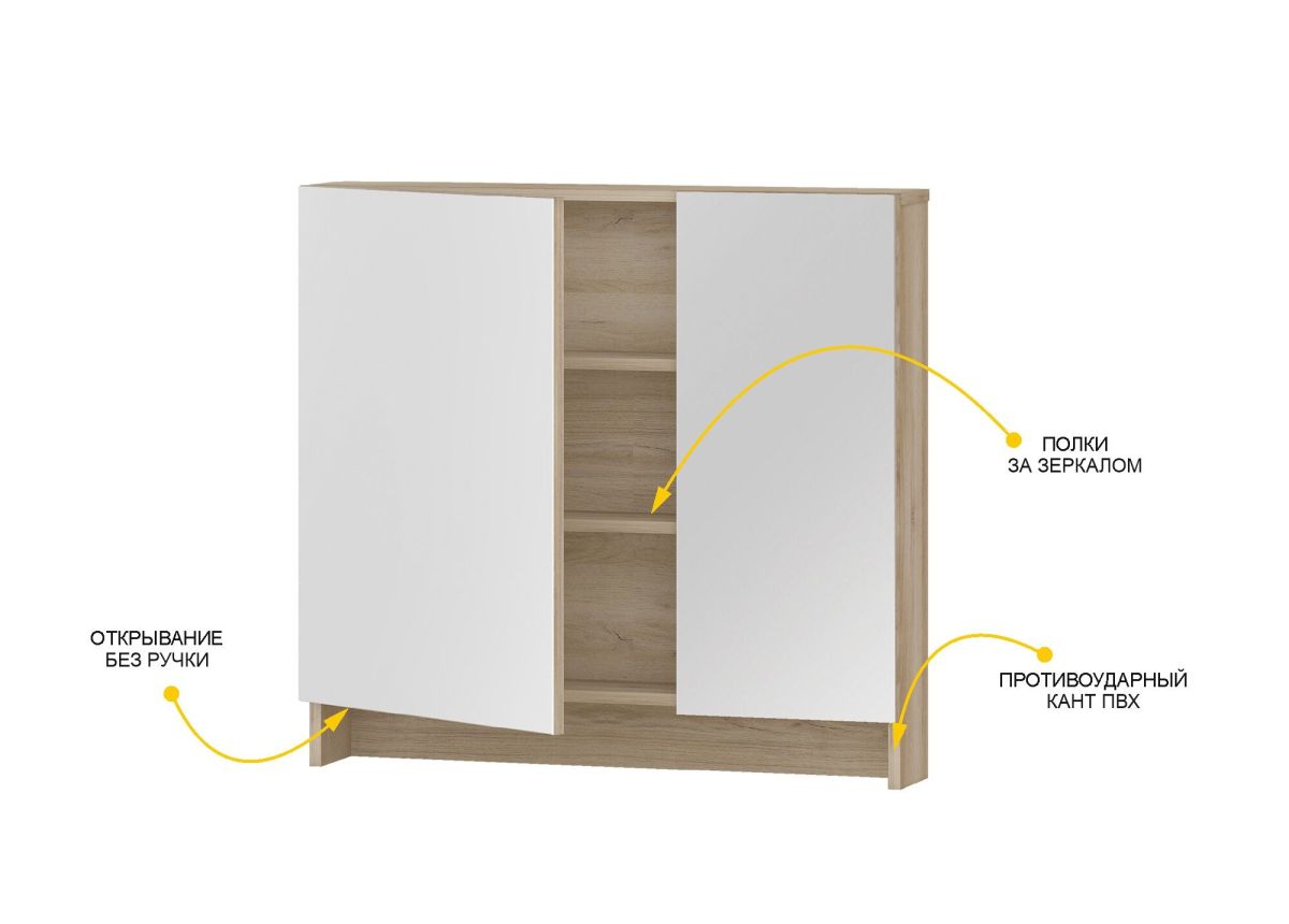 - Надстройка с зеркалом произведена из ЛДСП повышенной плотности. Материал устойчив к механическим и термическим воздействиям. ЛДСП выдерживает min 300 циклов на истирание, что почти в 5 раз больше, чем требуется по ГОСТу (min 65).