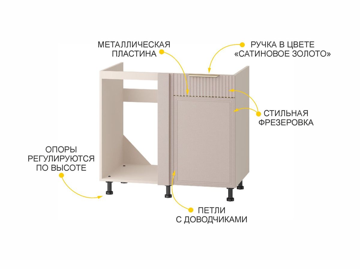 Угловой напольный шкаф под мойку «Флоренция 107.52» является частью модульной программы для кухни «Флоренция».