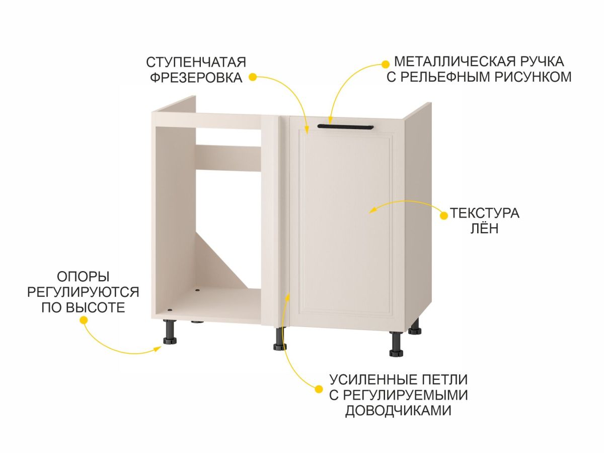 Угловой напольный шкаф под мойку «Неаполь 109.52» является частью модульной программы для кухни «Неаполь».