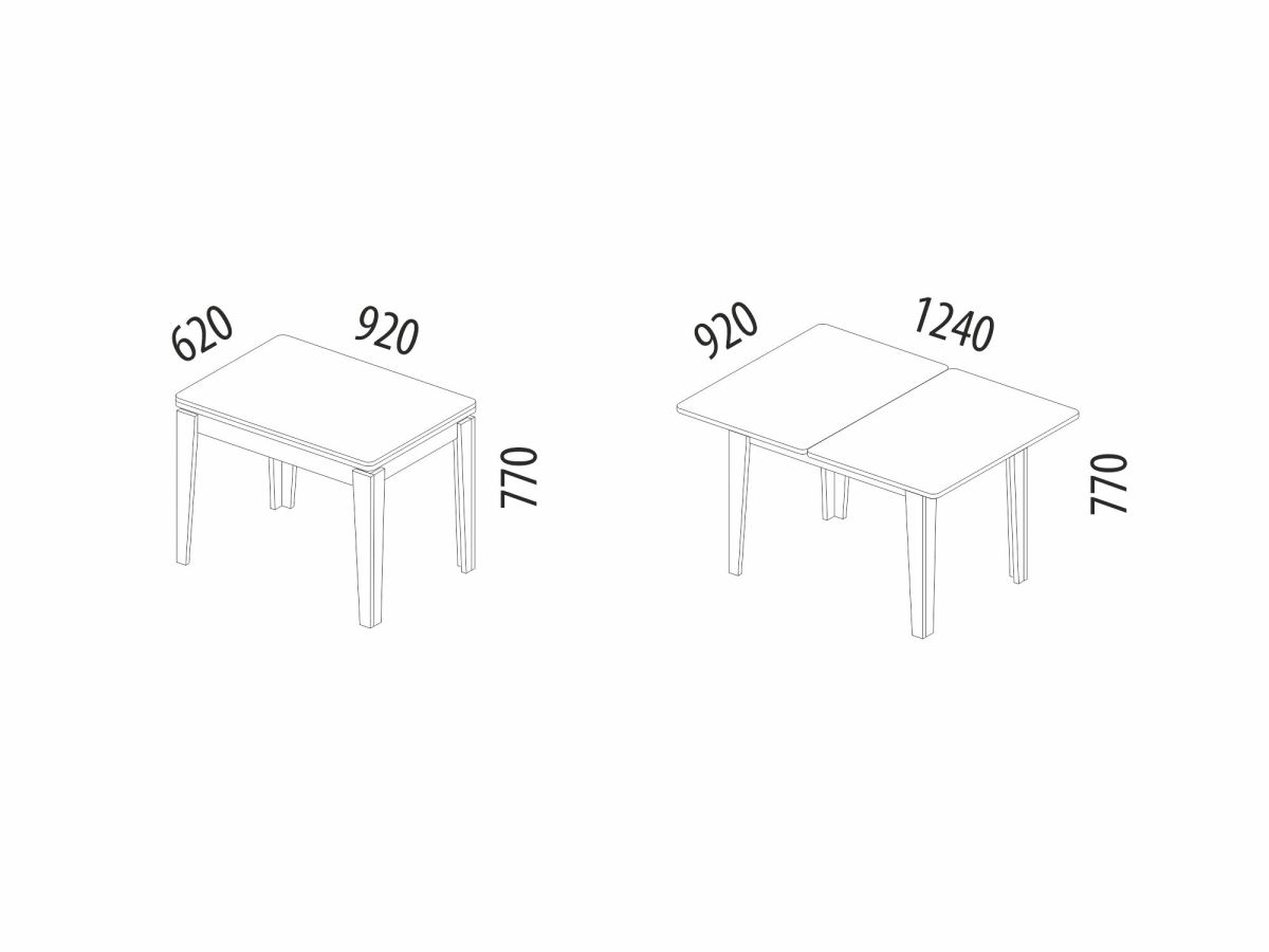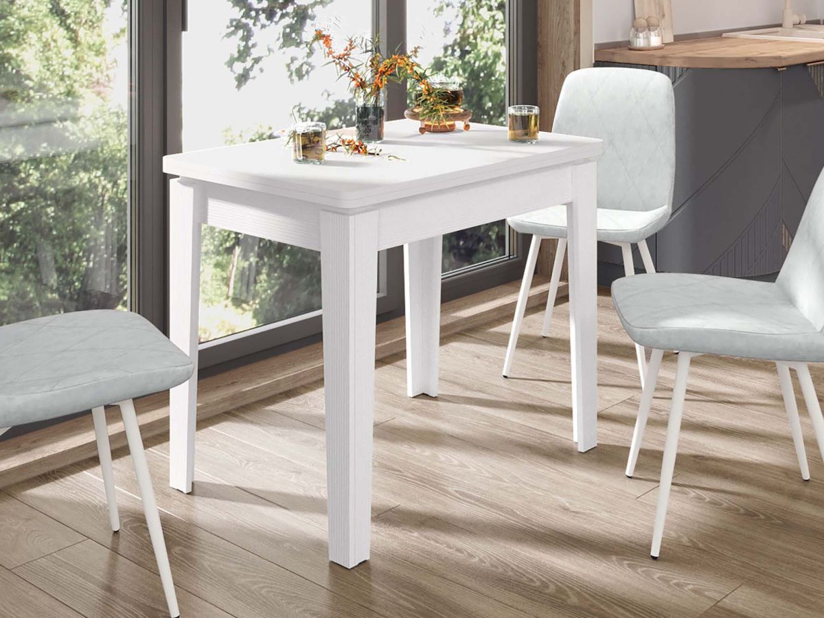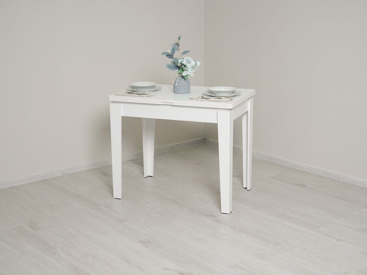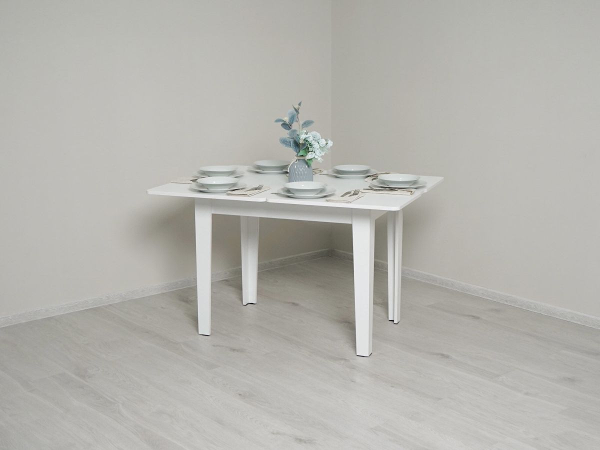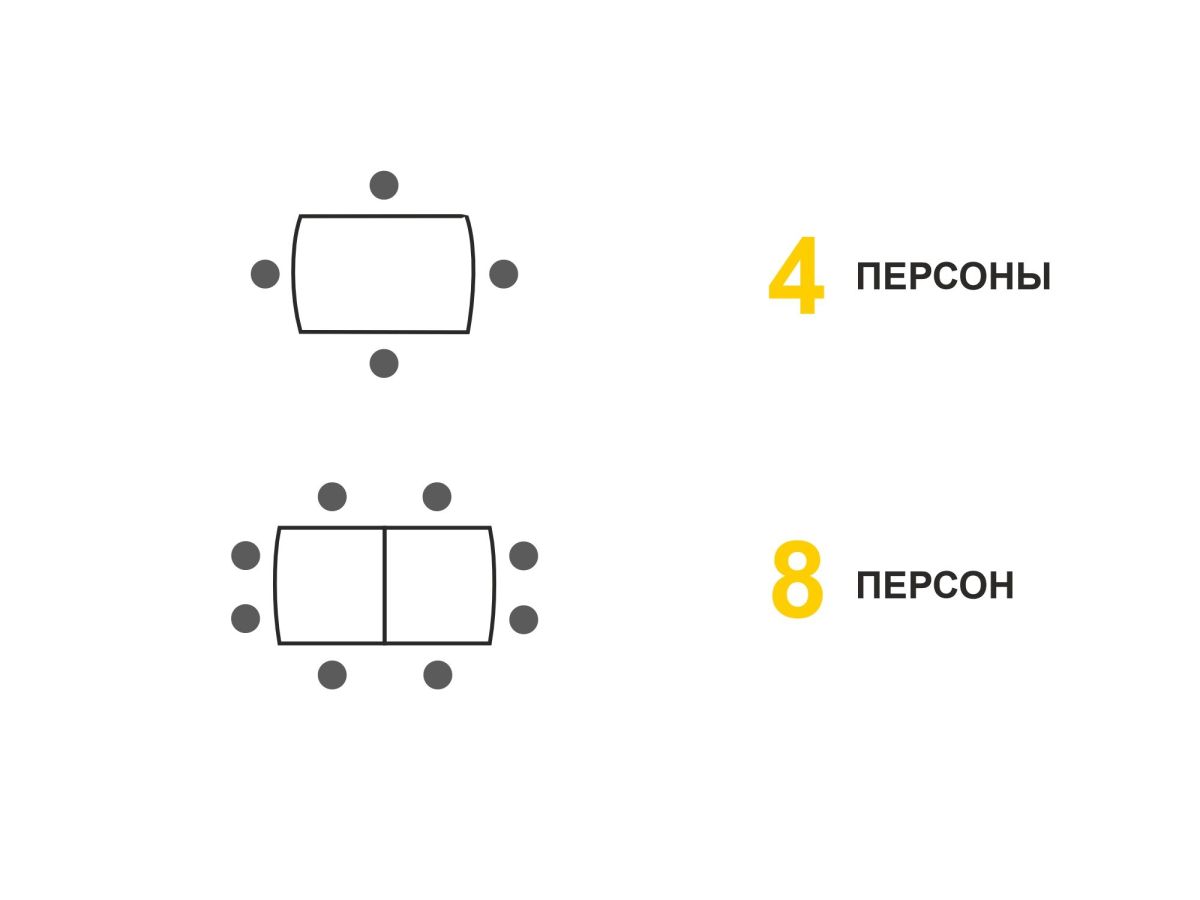 - За одну цену Вы фактически покупаете 2 обеденных стола – один компактный для 4 персон и один с увеличенной столешницей на 8 персон.