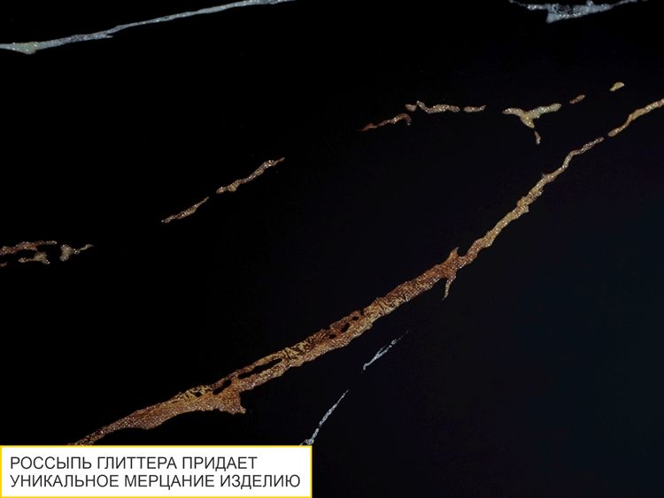 - Россыпь глиттера придает утонченное мерцание рисунку на столешнице, подчеркивает уникальность изделия и привлекает внимание.