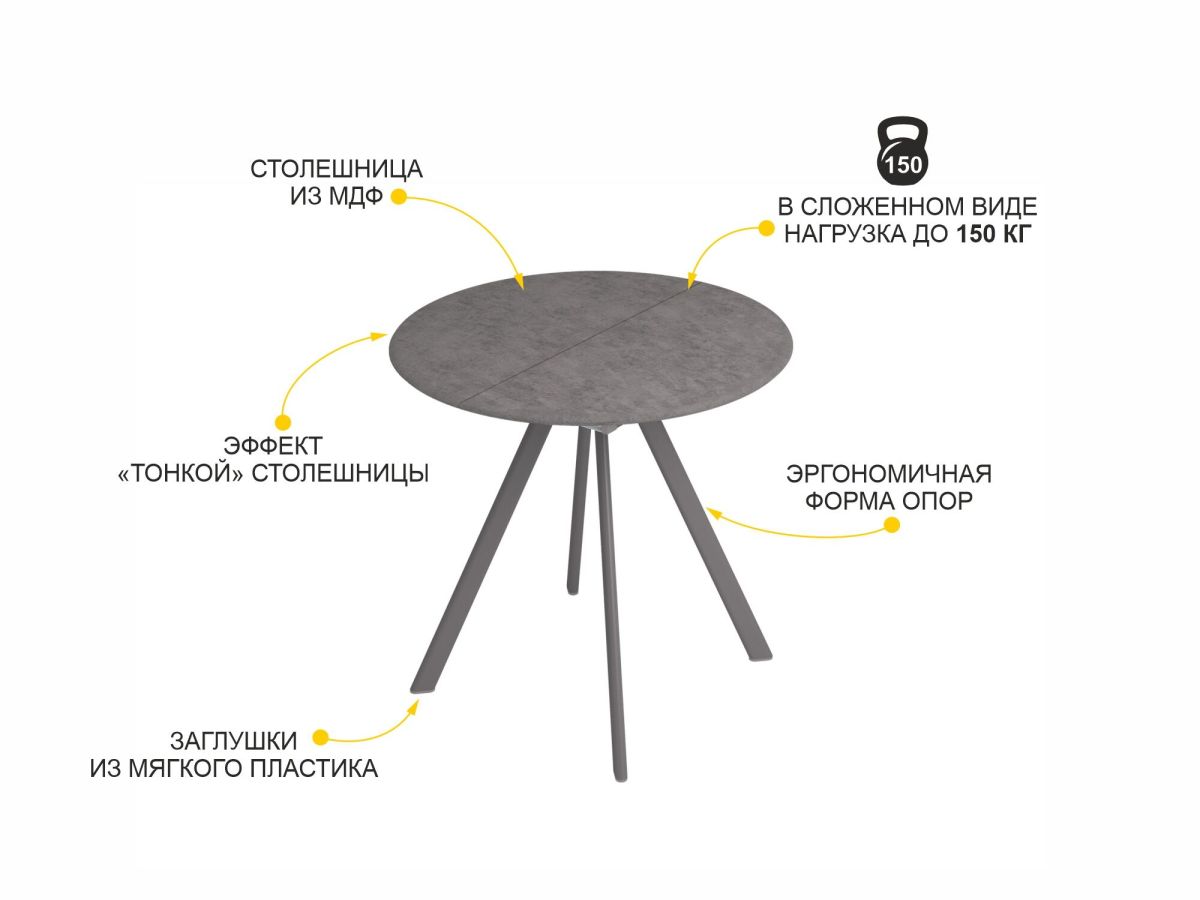 «Орфей 50 Бетон темный» – это стильный и функциональный обеденный стол-трансформер, который благодаря современному дизайну легко впишется в интерьер кухни или гостиной. Стильная цветовая гамма, сочетающая оттенки серого, делает стол идеальным акцентом для интерьеров в стиле лофт и минимализм.