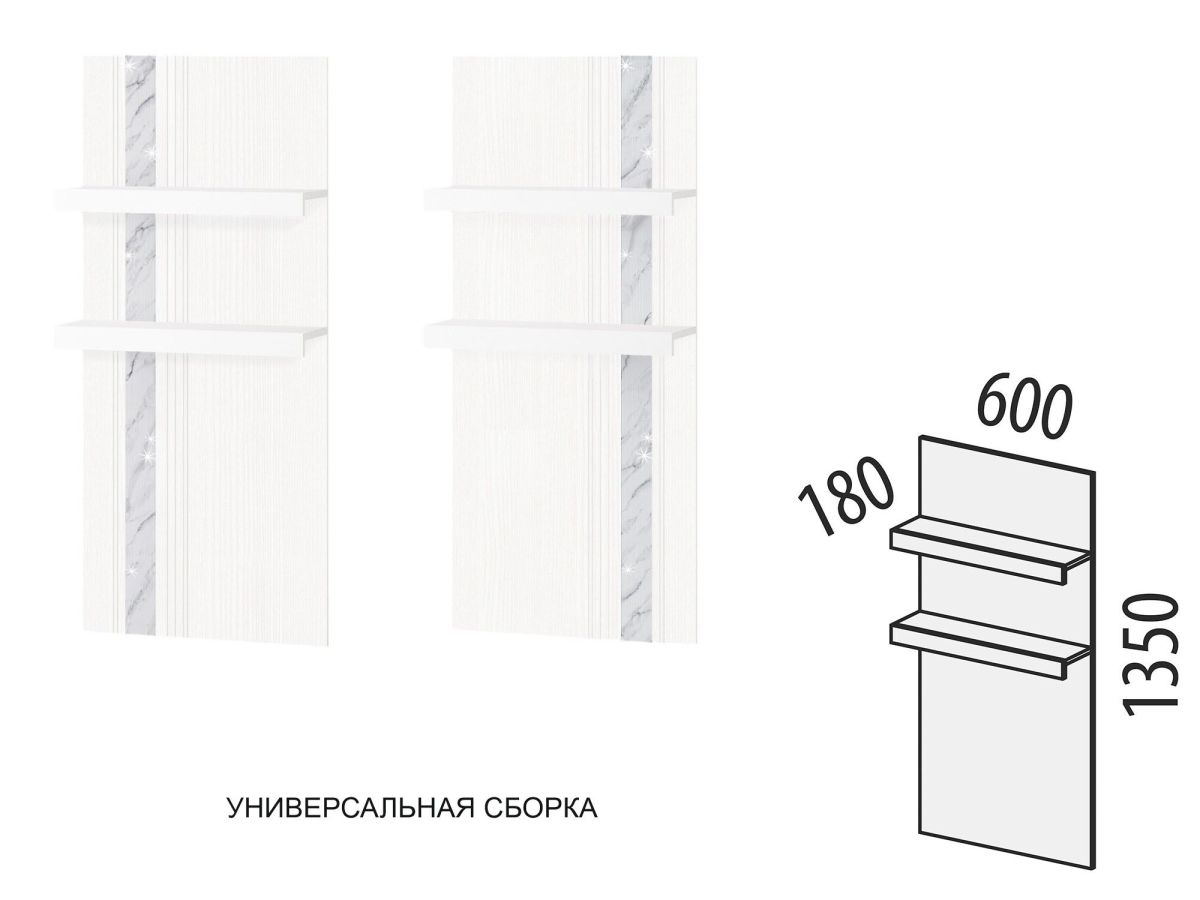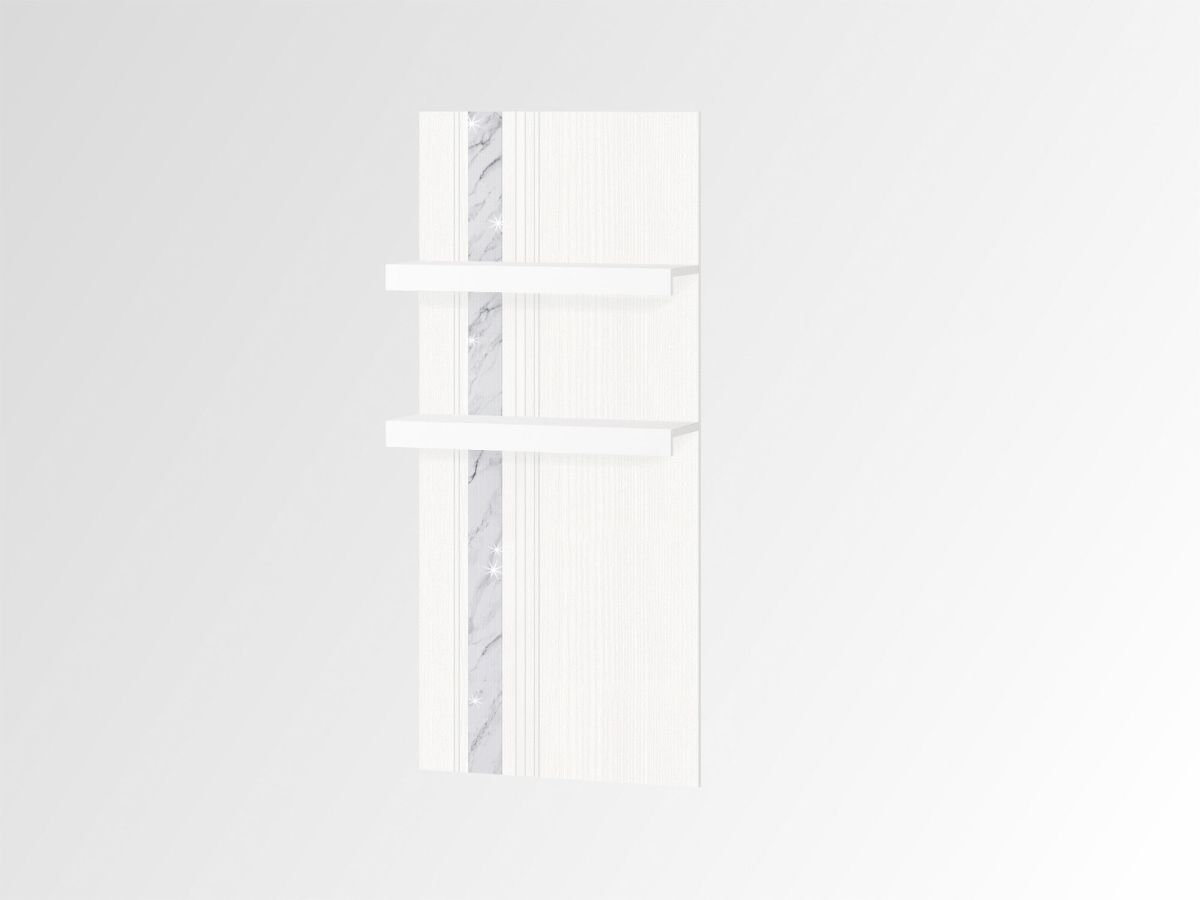 Панель с полками «Николь 603.25» является частью модульной серии «Николь». Гостиная «Николь» – это сочетание безупречного дизайна и неповторимой атмосферы комфорта. Белоснежные матовые фасады и нежно-серый мерцающий декор «мрамор» – визитная карточка этой коллекции. Конструктив и дизайн модели продуман до мелочей.