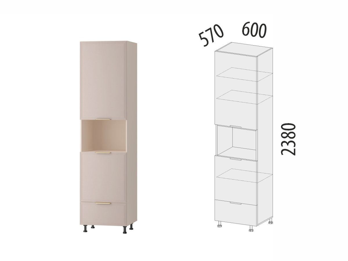 - Пенал позволяет устанавливать компактную бытовую технику (СВЧ-печь, в том числе и встраиваемую, кофеварку и др.) в открытую нишу. Внутренние габариты открытой ниши составляют: ширина — 566 мм, глубина — 522 мм, высота — 396 мм.