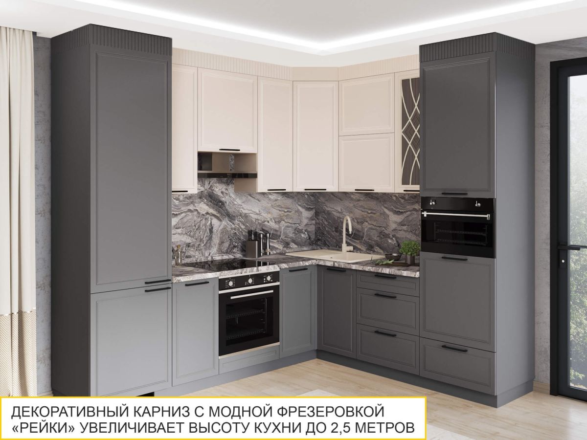 Кухня «Неаполь» объединяет в себе изысканность классических форм и сдержанную эстетику современного дизайна. Основу коллекции составляют четкие пропорции, спокойная геометрия и благородные оттенки. «Неаполь» — это кухня вне времени. Она легко впишется в интерьер, где важны комфорт, вкус и эстетика. Здесь каждая деталь на своем месте, а общее впечатление гармоничное и по-домашнему теплое.