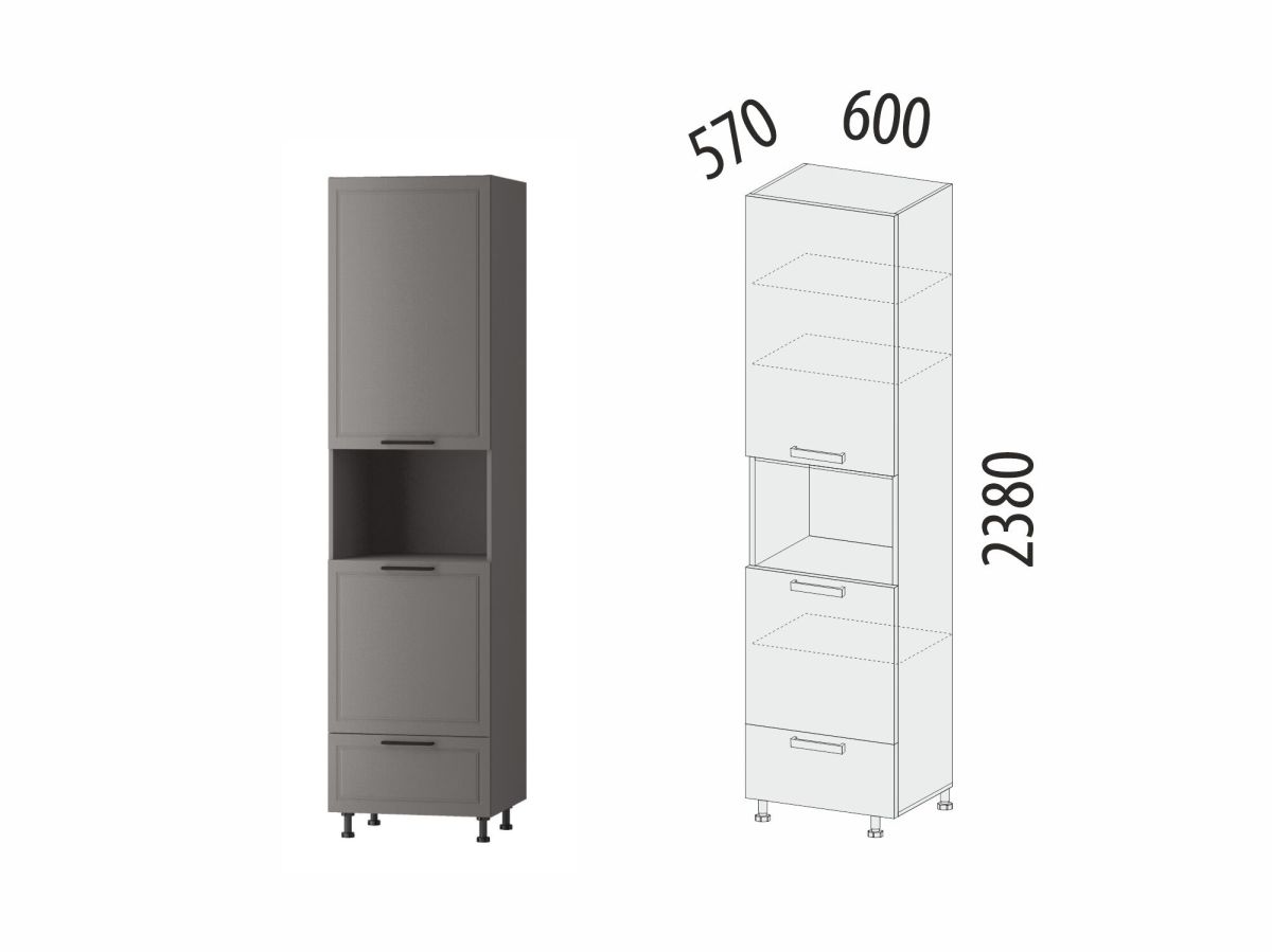 - Пенал позволяет устанавливать компактную бытовую технику (СВЧ-печь, в том числе и встраиваемую, кофеварку и др.) в открытую нишу. Внутренние габариты открытой ниши составляют: ширина — 566 мм, глубина — 522 мм, высота — 396 мм.