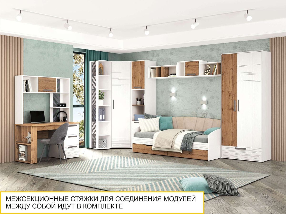 Полка «Аляска 503.07» является частью модульной программы «Аляска 503». Коллекция подростковой «Аляска 503» - это современное и функциональное пространство для жизни и учебы. Сочетание белоснежных фасадов с теплым оттенком натурального дерева создает стильный образ коллекции, а универсальный дизайн отлично подойдет как юношам и девушкам, так и детям дошкольного возраста.