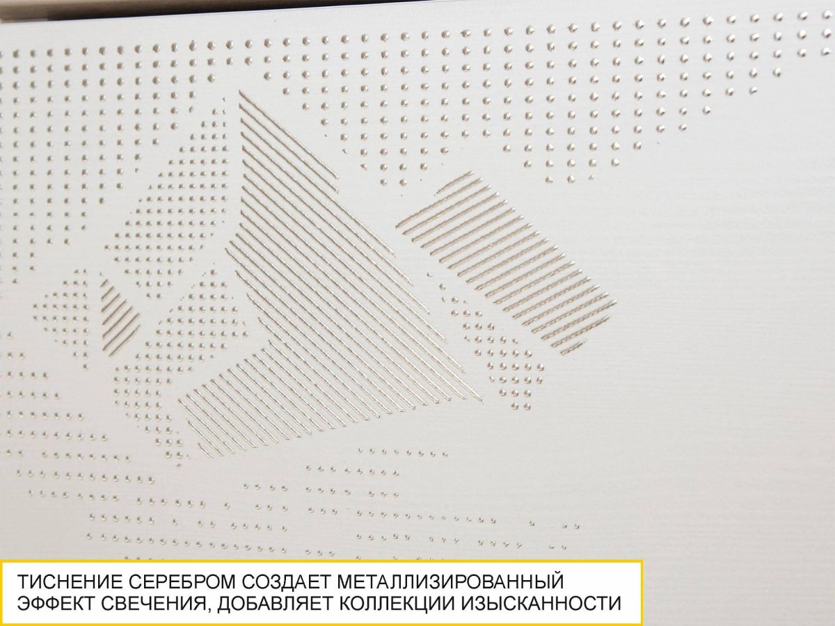 - Тиснение серебром создает металлизированный эффект свечения, придает изысканность и оригинальность коллекции.